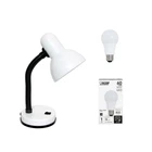 A nice, low-cost, and functional desk lamp to meet your basic lighting needs. This desk lamp features a painted plastitc base and metal shade, flexible hose neck, and ON/OFF switch located on the base for your convenience. Perfect for office, kids room, or college dorm! Features: BASIC AND VERSATILE: This desk lamp boasts a clean and modern design that seamlessly fits into any decor. Its neutral color and minimalist shape make it a timeless addition to your workspace. FLEXIBLE HOSENECK: The lamp's flexible hoseneck allows you to direct light exactly where you need it. Easily adjust the angle and height to optimize your lighting for reading, writing, studying, or any other task. CONVENIENT SWITCH: A convenient on/off button switch is located on the base of this desk lamp to allow a quick and easy on/off function as needed. Lamp is also equipped with a 5 foot black plug in cord rooted at the base. PRODUCT SIZE: Overall product size is L: 5" x W: 5" x H: 14.25" and weighs 1.65 lbs. The shade of this lamp measures Dia: 5" x H: 6". LED BULB INCLUDED: This desk lamp includes 1 x 60W equivalent LED Bulb, 8.8W, Warm White 3000K, 800 Lumens NO ASSEMBLY REQUIRED: This desk lamp comes fully assembled and ready to use. Specifications: Color/Finish: White Assembly Required: No Certifications and Listings: ETL On Oct 27, 2024 at 20:20:45 PDT, seller added the following information: