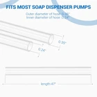 Are You Tired of CONSTANTLY Refilling your small built in sink soap dispenser bottle? Our Sink Soap Dispenser Extension Tube kit Eliminates Tedious Process of Refilling! Package include: ✔2 Extension tubes,total Length is 47" ✔4 Bottle stoppers ✔1 Upgraded Check valve ✔1 Anti-leak PP ball ✔2 Punch-free cable tie clips ATTENTION: NO SOAP DISPENSER INCLUDED. With the 47” extension tube to get rid of refilling little soap dispenser bottle,you can your bulk soap container anywhere under the sink. 4 stoppers designed to fit most soap bottle,preventing leaks and spills.No more waste of soap and money. Check valve and anti-leak accessories keeps soap primed at the top of the tube,so you don’t need to waste time pumping.Are you ready to stop pumping and pumping to FINALLY get soap? Hose holder can hold the tube on the wall,no more messy tubes. Are you really for a convenient life with soap dispenser tube kit? ORDER TODAY! SAY GOODBYE TO FREQUENT REFILLS: With the 47" kitchen sink soap dispenser extension tube kit, use the big bottle directly, no more refilling the tiny dish bottle. HIGH QUALITY: Food-silicone extension tube is soft, making it easier to pump the soap. EXCELLENT DESIGN: 4 multiple caps to fit most dish soap bottles. A check valve and Anti-leak accessories keep soap primed for a longer time. EASY TO USE: Connecting soap dispenser pump and soap container with extension tube kit directly, installation can be finished in a few minutes. PUNCH-FREE PASTE HOSE HOLDER help to fix the under hose on the wall, and keep away the messy cupboard. WHAT YOU GET: 4 bottle caps to fit all bottles, a check valve,47" extension tube, anti-leak accessories, and 2 punch-free cable tie clips. NO KITCHEN SOAP DISPENSER INCLUDED.
