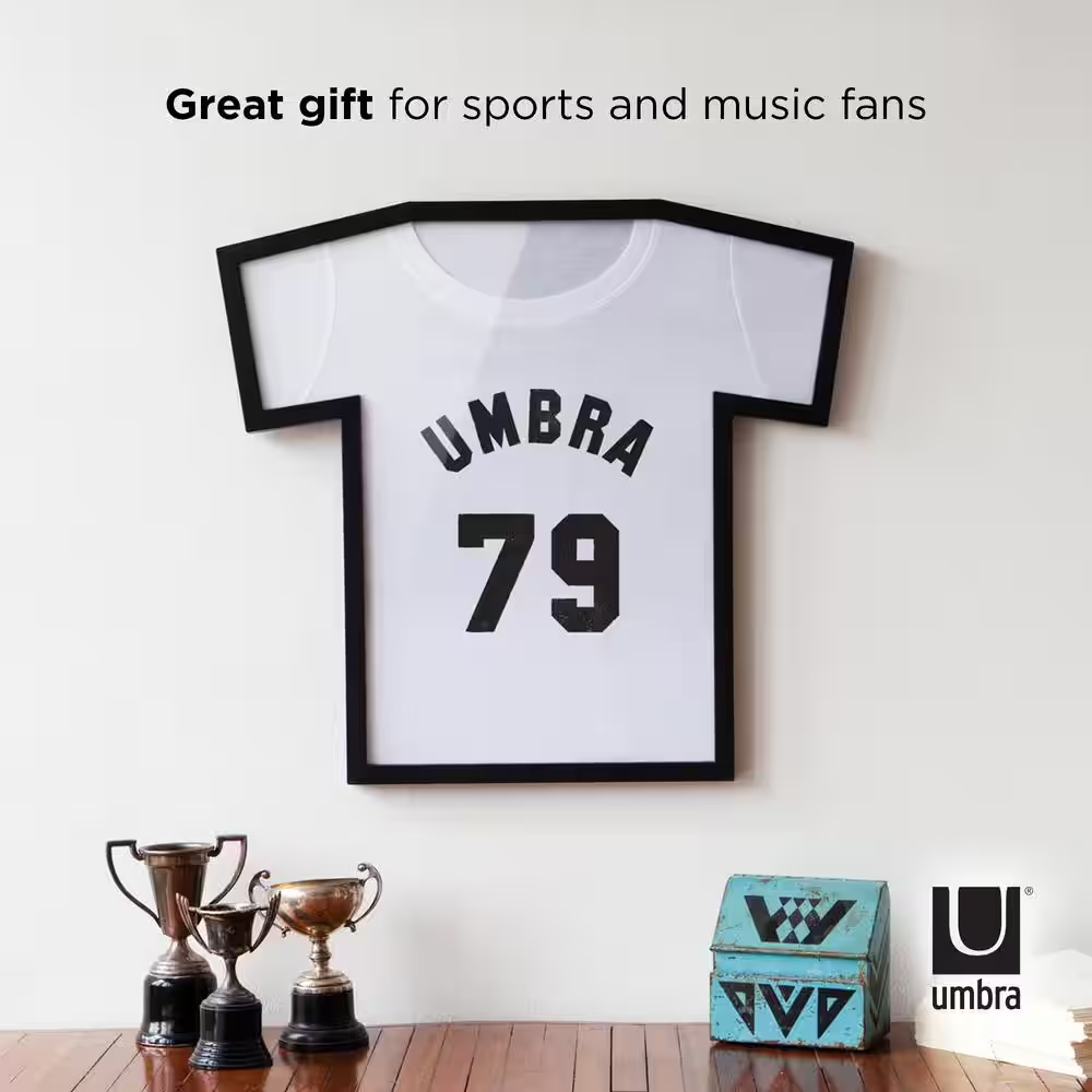 Store New Arrivals Add to Favorite View Feedback Contact T-frame Black Picture Frame | Umbra Original Photo Show Title Text Deko Marco Description Color Family Black Color/Finish Black Features No additional features Finish Matte Frame Cover Material Glass Frame Material Plastic Lifestage Adult Mount Type Hanging Orientation Vertical Overall Frame Size 21.25" x 19.88" Picture Capacity 1 Picture Size 2" x 2" Product Weight (lb) 1.86 lb Returnable 90-Day Shape Rectangle Specialty Frame Type Single Photo Frame Style Modern Theme Abstract Wall Decor Type Picture Frame Product Depth (in) 1.13 in Product Height (in) 21.25 in Product Width (in) 19.88 in Unique T-shirt shape for a unique wall art Shatterproof acrylic ensures safety and dust resistance Folding template allows easy setup This unique T-Shirt display case is made to showcase your favorite sports, concert, graphic or athletic t-shirts. Since it's shaped like a t-shirt, you can easily fold your shirt into the frame for a compact display that will keep it looking pristine. Included is a folding guide allowing you to align your shirt perfectly in the frame. With this quick and easy to use solution, you don't have to worry about your shirt sagging in a shadowbox, or being unprotected outside a frame. Made with shatter-proof acrylic your t-shirt will be safe and dust-proof behind this wall display. Simply fold your t-shirt on the built-in folding template and then place the jersey inside the frame. Umbra's T-Frame is available in a small (21.88 x 19.88 x 1.13 inches), medium (31.88 x 28.38 x 2.5 inches), and large (36 x 32.88 x 1.25 inches) size to accommodate your different t-shirts and jerseys. We strongly recommend you measure the portion of your t-shirt which you intend to display PRIOR to ordering to ensure it will fit correctly. UNIQUE T-SHIRT SHAPED FRAME: Display your favorite t-shirt on any wall with this modern frame designed to create a memorable piece of wall art while still preserving the iconic t-shirt shape TURN YOUR T-SHIRT INTO ARTWORK: Umbra T-Frame is the ultimate way to show off all sorts of t-shirts including graphic tees, statement tees, brand & logo t-shirts, sports & athletic t-shirts, memorabilia & concert t-shirts, artsy t-shirts, and more WINNER OF THE PRESTIGIOUS PRATT INSTITUTE DESIGN COMPETITION: This creative, one-of-a-kind design from Caleb Ferris and Prakhar Mehrotra was the winner of Umbra's annual design competition done in conjunction with the Pratt Institute School of Design in 2012 EASY TO SETUP: Umbra T-Frame includes a folding template to ensure your t-shirt stays in place and looks its very best. Umbra's T-Frame is also available in a small and large size to accommodate your different sports jerseys, t-shirts and memorabilia. 5-YEAR MANUFACTURER WARRANTY: Shop with confidence knowing that all Umbra products are backed by a 5-Year Manufacturer Warranty ABOUT US We offer the best prices around on high quality products. Our E-store includes tools, general home, garden items and more. SHIPPING We are always working hard to ensure your package arrives as soon as possible. Please understand that some factors like weather, high postal traffic, and the performance of shipping companies are outside of our control. We offer free shipping to the lower 48 states and ship within 4 business days of payment, usually sooner. We do not accept P.O. Boxes. Please provide a physical address. RETURNS We offer a 30-Day Return Policy on items which you are not completely satisfied with. You have the option for a full-refund or an exchange of the item. No returns are available on items shipped outside of the USA. PAYMENT We accept PayPal. CONTACT US This page content is yet to come Please ad us to your favorite seller and visit again later Thank You CUSTOMER SATISFACTION We try our very best to make sure every customer is completely satisfied. If there's a problem, message us! We're happy to help. WE ACCEPT Copyright © 2017 AutoDs. | All Rights Reserved