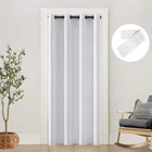 Alternative Door Ideas:Tired of not economical wood/vinyl doors?Broken tracks?Small areas not enough room such as RV?Need more conveniently pass through?This easy install soft fabric drapery is perfect for you instead of doors now. Performance:Keep full privacy against the other side.90-100% blackout. Pls understand dark colors work better.Thermal insulated like a thin blanket to keep warm in winter and block cold to save energy and ac budget.Also help on sound proof and noise cancelling. Unique Size:Custom made at 52 inch wide by 80 in drop covering basic door openings at 24x80,28x80,30x80,32x80,36x80.Pls note as the vintage antique bronze grommets sliding takes some width,you should choose a door curtain wider than the opening.If you also like accordion door and keeping the elegant ruffle effect when folded,wider size is also smart choice. Multi Functions:Simple but versatile at closet door,bathroom door,kitchen door,bedroom door,front door,sliding glass door and any openings. Product Info:Beautiful rings at top for silky sliding and folding.cloth TIEBACK included for temporary open needs.NO CURTAIN ROD INCLUDED.NO BEADS.