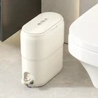 Dual - Operation Lid for Maximum Convenience : This trash can is designed with both a foot pedal and a press - to - open lid, giving you the flexibility to choose the most convenient way to open it. Use the foot pedal when your hands are full or dirty, and the press - to - open function when you need quick access. Elegant Design: The creamy white body of this trash can is made of high - quality ABS, giving it a sleek and modern look. The unique circular foot pedal design adds a touch of style, and it can be hidden when not in use. This trash can is not just practical but also a decorative piece that can enhance the aesthetics of any space. Space-Saving Slim Design: This restroom trash can's slim design efficiently utilizes space, making it perfect for toilets and tight areas where space is at a premium. Silent Operation Design: This lidded trash can offers a quiet and smooth opening and soft closing mechanism, ensuring that it operates without disturbance, perfect for maintaining a peaceful ambiance in any setting. Compact Dimensions for Versatile Spaces: At 13" in height, 6.1" in width, and 12.3" in length, our compact dustbin fits neatly into various spaces, from living rooms to restrooms.