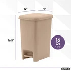 Store New Arrivals Add to Favorite View Feedback Contact Slim Trash Can with Foot Pedal – 4 Gallon Step-On Trash Can, Small Plastic Garbage Can with Lid, Trash Can for Bathroom, Bedroom, RV, Kitchen, Office, Patio, or Dorm – Beige Description Item model number 2 Room Type Bathroom,Bedroom,Office Capacity 4 Gallons Number of Items 1 Color 4 Gallon Special Feature Quiet Close, Pedal Product Dimensions 9 x 12 x 15.5 inches; 1.76 Pounds Material Plastic Country of Origin Italy Shape Rectangular Opening Mechanism Step-On Recommended Uses For Product Bathroom,Desk Finish Type Beige Manufacturer Brand Perfect For Tight Spaces - Do you need a garbage can that fits next to your desk or next to the bathroom sink? Then you’ve found the perfect lidded trash can for your needs! Bucket Handle Prevents Bag Slipping - We’ve all been there. You go to put a new bag in your trash can only to have the bag crumple inside the second you put any weight in it. This garbage pails bucket handle feature prevents that annoying scenario from ever happening to you again. Simple And Easy to Clean - Trash cans can get gross quickly, which is why we offer a trash can that allows you to get into nooks and crannies without breaking a sweat! Comes In 5 Different Colors - We have a color to suit every preference! No matter the decor style, one of these trash can colors will work in your space. Zero Chance Of Rust - Unlike stainless steel trash cans, this chrome plastic garbage can will never rust! Our foot pedal garbage can will last you for years to come. Product Description Here at Superio, we strive to constantly innovate new designs, technologies, and materials to create always improving cleaning supplies, household storage supplies, kitchen products, and bath products. We care about making our customer’s lives easier and simpler at home and beyond. Many consumer goods companies look to take shortcuts and eliminate key product features that cost a bit more time to manufacture but make the product superior to the competition and better for customers everywhere. We don’t believe in taking shortcuts or getting rid of features that limit functionality and usefulness. It’s our job to make your life easier so you can spend less time cleaning and organizing and more time enjoying your home and your life. Our product help make your home more comfortable, inviting, and a place to enjoy with your family, friends, and loved ones. Try Superio products today and see the difference for yourself. THE BEST COMPACT TRASH CAN Our small plastic step can is versatile and aesthetically pleasing while also being a great fit for your bathroom, kitchen sink, dorm, or anywhere in your home that space is tight. FOOT PEDAL This trash can features an extra-strong pedal that has been designed for easy use. Simply give it a push with your foot and you’re good to go! Once you’ve experienced this hands-free trash can, you’ll never be able to go back to pedal-less trash cans again. HIGH-QUALITY PLASTIC It is made of the highest quality, durable plastic available. While stainless steel may be flashier, this plastic product will last you years without breaking or rusting. NO INNER BUCKET NECESSARY This high-quality foot pedal trash can doesn’t require an inner bucket, allowing for up to 20% more space for your trash! This saves you money in the long run, as you’ll be able to get more use out of your trash bags. MULTI PLACES USE Bath: This step on a trash can is a great size for the space between the toilet and the shower or next to the bathroom sink. Kitchen: Use this compact garbage can in the cabinet under the kitchen sink to keep your kitchen clutter-free. Dorm/Bedroom: This garbage pail is a great option for bedrooms, as you don’t want to let trash in your room stack up. Office: This small trash can fits seamlessly under any modern desk! The Perfect Trash Bin Keep this elegant trash bin in your bathroom, underneath your desk, or in any small space. Dimensions: Overall Height - Top to Bottom: 13.5". Overall Width - Side to Side: 8". Overall Depth - Front to Back: 11". Purpose: Use in kitchen, dorm, bedroom, office, bathroom, and wherever suited Material: durable plastic Color: Beige Easy Open Lid Lid opens easily and closes gently. Neat Color and Size This trash can's neat shape and classic color give an elegant and modern look to its surroundings. Foot Pedal Strong foot-pedal that opens lid easily with a step of your foot.this trash cans neat shape and classic color give an elegant and modern look to its surroundings ABOUT US We offer the best prices around on high quality products. Our E-store includes media such as books, movies, music and games while offering electronics, toys, sporting apparel, clothing, tools, general home, garden items and more. SHIPPING We are always working hard to ensure your package arrives as soon as possible. Please understand that some factors like weather, high postal traffic, and the performance of shipping companies are outside of our control. We offer free shipping to the lower 48 states and ship within 2 business days of payment, usually sooner. We do not accept P.O. Boxes. Please provide a physical address. For shipping outside of the continental USA, we only use eBay's Global Shipping Program.The item is shipped to KY and then sent to the rest of the world. International customers are responsible for all duties and taxes. Continue to check out in order to calculate costs for shipping the item to your country. Messages regarding eBay's Global Shipping Program MUST be directed at eBay EXCLUSIVELY. RETURNS We offer a 30-Day Return Policy on items which you are not completely satisfied with. You have the option for a full-refund or an exchange of the item. No returns are available on items shipped outside of the USA. PAYMENT We accept PayPal. CONTACT US This page content is yet to come Please ad us to your favorite seller and visit again later Thank You CUSTOMER SATISFACTION We try our very b