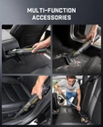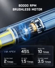 Note: This car vacuum is compact which is not suitable for cleaning large areas. It is suitable for cleaning the details of the car interior as well as indoor detail cleaning, office desk, computer keyboard dust 4-in-1 Multifunctional Mini Vacuum: V8 Apex car vacuum cleaner cordless comes with multiple accessories to meet all your different needs. Vacuuming, blowing, inflating, pumping 10 Practical Accessories: Crevice Nozzle and Flexible Hose can easily clean hard-to-reach corners, Push-in Brush for stubborn dust, Multi-Surface Brush and Pet Brush suitable for picking up pet hair on fabric surfaces Unleash 19000Pa Suction: 80000rpm brushless motor provides suction of Max 45AW/19kPa to easily pick up stubborn sand, dust, and debris. Two suction modes, Eco Mode can be used for 40 minutes, and Max Mode for 13 minutes Ultra-Light : Only at 1.1lbs (498g) that a bottle of water weighs, with the cordless design allows you to easily handle sand, dust, every corner of the car with one hand. Compact and portable, the attached storage bag is convenient for car storage One-Touch to Empty: A single touch pops open the lid automatically, emptying debris without getting your hands dirty. The ring latch is designed to prevent accidental touch. The HEPA filter captures a whopping 95.99% of dust and particles Type-C Charging & Fast Charging: With a universal type-c charging cable, the handheld vacuum can be fully charged within 2.5 hours. Charge it in the car or charge with standard chargers (15W or higher), computers, or various storage devices