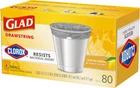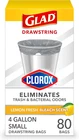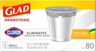 ELIMINATES TRASH AND BACTERIAL ODORS: Glad with Clorox helps you take control of odors by eliminating trash and bacterial odors on the garbage bag; packaging may vary EASY-CINCH DRAWSTRING: Handle all your daily household demands with small trash bags that tie with a quick cinch of the drawstring for easy trash removal CLEAN-SMELLING SCENT: These small drawstring trash bags feature a Lemon Fresh Bleach scent that gently freshens your home with just a hint of sparkling clean scent 4 GALLON GREY SMALL TRASH BAGS: Glad wastebasket liners are great for small garbage cans, general household needs and just the right size for cars and on-the-go messes CLEANING MADE EASY: Glad with Clorox garbage bags work as hard as you do to help maintain a clean and healthy feeling home with a versatile design for bins around the home Glad and Clorox have joined forces to create a trash bag with the strength of Glad and the odor-fighting power of Clorox. Glad with Clorox Small Drawstring Trash Bags eliminates trash and bacterial odors on the bag to help keep your home feeling fresh and healthy. These 4 gallon garbage bags fit small size trash cans and are ideal for bathrooms, bedrooms, offices, nurseries and laundry rooms. Featuring a grey bag and printed hexagon design on the hem of the bag, these trash bags add a design detail to any room when they are folded around the edge of the can. Just a quick cinch of the durable drawstring makes trash removal simple. These versatile trash bags feature the clean smell of Lemon Fresh Bleach Scent. Glad with Clorox garbage bags work as hard as you do to help maintain a fresh and healthy feeling home with a versatile design for bins around the home. Glad 4gal bags are comparable to Simplehuman A, B, C, or R trash bags*. *Simplehuman is a trademark of Simplehuman, LLC. Glad is not sponsored by or affiliated with Simplehuman.