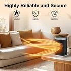 Rapid Heating: This space heater delivers 1500W power for quick and comfortable warmth. The portable design allows placement by your feet on the floor, beside your hands on the office desk, or for carrying around indoors. It's also suitable for tent use. This compact heater can warm areas up to 200 square feet. Comprehensive Safety Protection: ETL certified with features like tip-over and overheat protection, along with an enhanced safety plug. Built with flame-retardant materials, ensuring ultimate safety from all aspects. Energy-efficient: The ECO mode automatically adjusts the heating level to reach your desired temperature, providing precise and comfortable warmth. The 70° wide-angle oscillation covers the entire area, offering widespread heat for your bedroom, garage, basement, office, desk, and more. Multiple Modes of Operation: Various modes including High/Medium/Low/ECO/Fan Only cater to different heating needs, from powerful heating to energy-saving ECO heating. The heater with remote control enables an easy balance between heating and efficiency, the remote control requires two 3A batteries (batteries not included). It operates quietly, allowing you peaceful sleep or work. The 1500W desktop indoor heater is highly portable, allowing you to carry it outdoors whenever needed. The space heater is suitable for home, large rooms, indoor spaces, living rooms, bedrooms, basements, offices, and tent usage, among others. Product Description