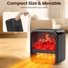 Realistic Flame Ambiance: mini spcae heater designed with heating and fireplace are meticulously designed to emulate the cozy charm of a traditional fireplace without the mess and smoke. Quiet and fast heating: With the latest PTC ceramic heating technology, this space heater fireplace is designed to provide efficient warmth and has 2 Heat Settings, I for 750 W, II for 1500 W.You can have the simulated fire without the heat. Portable Mobility Designed: Designed with a built-in handle, whether you want to warm up your office, living room, or bedroom, this portable heater can be easily transported to provide heat precisely where you need it the most. Double Safety Measures:The sensitive tip-over switch ensures that the fireplace heater auto shuts off if accidentally knocked over. Built-in overheat protection sensor auto shuts off when the temperature of the internal heater reaches 167 °F in accident to prevent any potential hazards. Energy-effective heater: Thermostat control of the electric fireplace heater back will turn the small electric fireplace off when it reaches a preset temperature and turn the heater back on when the temperature dips below the thermostat setting.