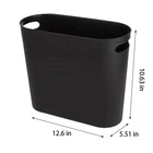 Quality Material: Made of premium PP plastic, the bathroom garbage can won't crack, chip, or outgrow its shape easily, Ensuring Long Term Use. Perfect Size: 12.6 L×5.5 W×10.6 H inch, slim oval shape makes this plastic trash can fit in any small nook, no longer have to worry about the narrow space in the room being wasted. Easy to Clean: The surface of this trash bin makes it easy to clean, simply wipe it down with a damp cloth or rinse it with water, takes to keep your trash can looking like new, easy maintenance. Stylish: The narrow waste basket surface with frosted texture finish, with a stylish rainbow pattern on the side, perfect of decor styles. Versetile: The size and style allow the black trash can to work anywhere in your home, such as bedroom, kitchen, perfect for storing toys and other sundries in your children's playroom, holding trash under sinks, cabinets, or next to the toilet. Warming Tips: Please read our dorm trash can specifications carefully before you perchase our product.