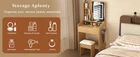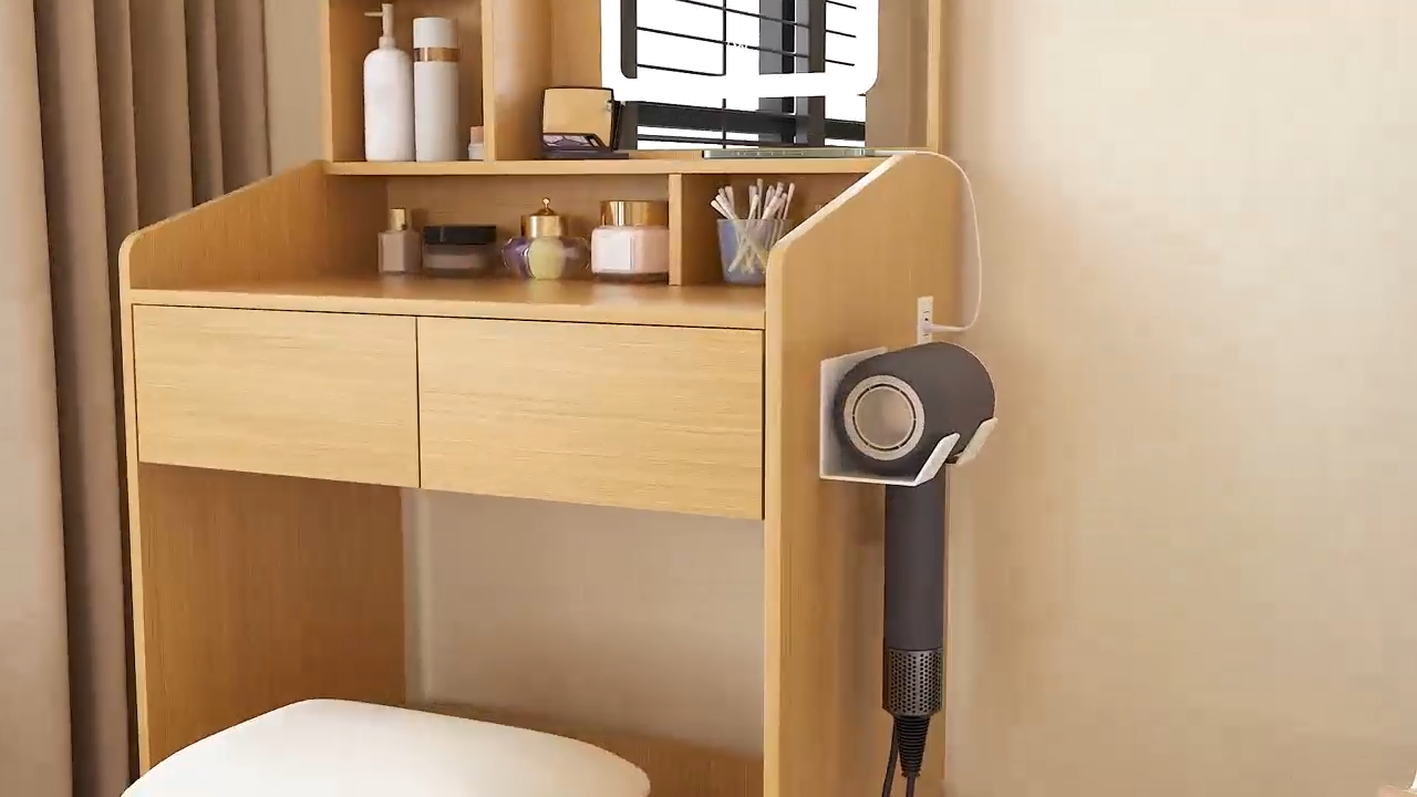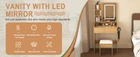 【Vanity Set with Storage Stool】This elegant vanity desk includes two smooth-gliding extra-large drawers and a luxuriously padded stool. The open shelves and spacious desktop keep your everyday makeup and styling tools neatly organized and within easy reach, making your beauty routine efficient and enjoyable 【3-Color Adjustable Lighting】Professional-grade makeup mirror with three color temperature modes—cool, natural, and warm light—designed to adapt to various daily scenes like office work, outdoor activities, and evening events. The high-definition mirror offers a clear, true-to-life reflection, and its adjustable brightness eliminates shadows and color distortion, ensuring perfect makeup application in any lighting condition. Ideal for both home use and professional makeup studios 【Built-in Charging Station】Equipped with a built-in charging hub, the vanity allows you to effortlessly power your curling iron, hairdryer, or beauty devices while charging your phone or tablet. Never worry about battery drain—stay powered and connected as you get ready 【Ample & Organized Storage】Featuring two deep drawers, multiple open shelves, and a generous tabletop, this vanity provides abundant space to organize and display your cosmetics, perfumes, jewelry, and essentials. Keep everything tidy, accessible, and beautifully arranged—a perfect gift for your loved ones or yourself 【Easy Assembly】Crafted from high-quality solid wood for durability and stability, the vanity comes with detailed step-by-step instructions for straightforward assembly. Should you need help, our customer service team is always ready to assist
