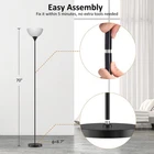 9W LED dimmable remote control bulb included; Floor lamp with 9W dimmer remote control led bulb that can be remotely controlled within 49 ft Stepless brightness and adjustable color temperature; Use the remote to smoothly adjust brightness from 5% to 100% and color temperature from 3000K to 6000K. The replaceable bulb design allows you to choose different lights to match the scenes you need Multiple switching modes; This floor lamp features a remote control and a foot switch; The combination of both makes it more convenient for living rooms and bedrooms; The magnetic remote can be attached to the lamp or any metal surface to prevent losing it Easy to assembly; It is easy to Install, No extra tools are required, you only need to screw all the parts of the pole together to complete the assembly of this torchiere floor lamp, assembly has never been easier Space-saving corner lamp; Standing lamp great for reading room and living room, the sky torchiere floor lamp easily fits beside the couch or in the corner