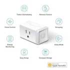 【Compatibilidad con Apple Homekit】Este enchufe inteligente compatible con Apple HomeKit se integra completamente en su ecosistema Apple, solo pídale a Siri que encienda/apague los dispositivos de su hogar. (El control remoto Apple HomeKit requiere un dispositivo Apple conectado en red adicional en casa, como un iPad, HomePod o Apple TV). 【Monitoreo de energía y carga máxima de 15 A】Utilice el enchufe doméstico Wi-Fi inteligente para controlar el uso de energía de su dispositivo conectado en tiempo real y ver su consumo de energía histórico dentro de la aplicación Kasa Smart. Carga máxima admitida de 1800 W, 15 A. 【Configuración súper fácil】Disfrute de un proceso de configuración extremadamente fácil y rápido con este enchufe inteligente compatible con configuración sin frustraciones de Amazon (FFS) y configuración perfecta de Google (GSS). También puedes configurarlo en unos pocos pasos con la aplicación Kasa. 【Diseño compacto e ignífugo】Evite bloquear tomacorrientes adicionales con su diseño compacto y conecte su enchufe inteligente WiFi con confianza gracias a su diseño ignífugo certificado UL y garantía limitada de 2 años. ?Aplicación y control de voz?Controla tu enchufe inteligente WiFi desde cualquier lugar y en cualquier momento a través de la aplicación Kasa gratuita o simplemente da comandos de voz a Siri, Amazon Alexa, Google Assistant o Samsung SmartThings. Tu asistente inteligente favorito te permite tener una experiencia verdaderamente manos libres. Humedad de funcionamiento: 5%~90% RH, sin condensación Requisitos del sistema: Android 5.0 o superior, iOS 10 o superior.