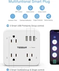 Smart Plug Outlet Extender Compatible with Alexa Google Home, TESSAN WiFi Multi Plug Outlet with 3 Outlets 3 USB, Wall Outlet Surge Protector Power Strip 900J for Indoor, Voice and Smartlife Control Product Details Manufacturer: TESSAN Item Weight: 9.3 ounces Product Dimensions: 3.9 x 1.1 x 3.9 inches Item Package Quantity: 1 Batteries Required?: No Voice Control & APP Remote Control: TESSAN smart plug extender is compatible with Alexa and Google Assistant to turn your appliance on or off with a simple voice command. Also can control your device easily away from home with free Smart Life APP. (Note: This smart plug only supports 2.4GHz Wi-Fi network) Multiple outlets Smart Plug: This wall outlet splitter has 3 smart AC outlets and 3 smart USB charging ports, which power your electrical appliances under 1250W & USB devices. Smart outlets support group & single control, and USB ports support only Group control Schedule and Timer: Tessan smart outlet plug can automatically turn on/off the devices by customized schedules, such as Christmas lights, lamps, humidifiers, fans, coffee makers, and other home electronic appliances Surge & Overload Protection: The power will be off automatically if overload occurs by the built-in power sensing detection in the smart plug, and a notification will be sent by APP. Also, 900J surge protection protects your expensive electrical appliances at home, office dorm room, etc. Energy Monitoring: Use the smart Wi-Fi home plug to monitor the energy usage of your connected devices in real-time and view its historical power consumption in the Smart Life app.