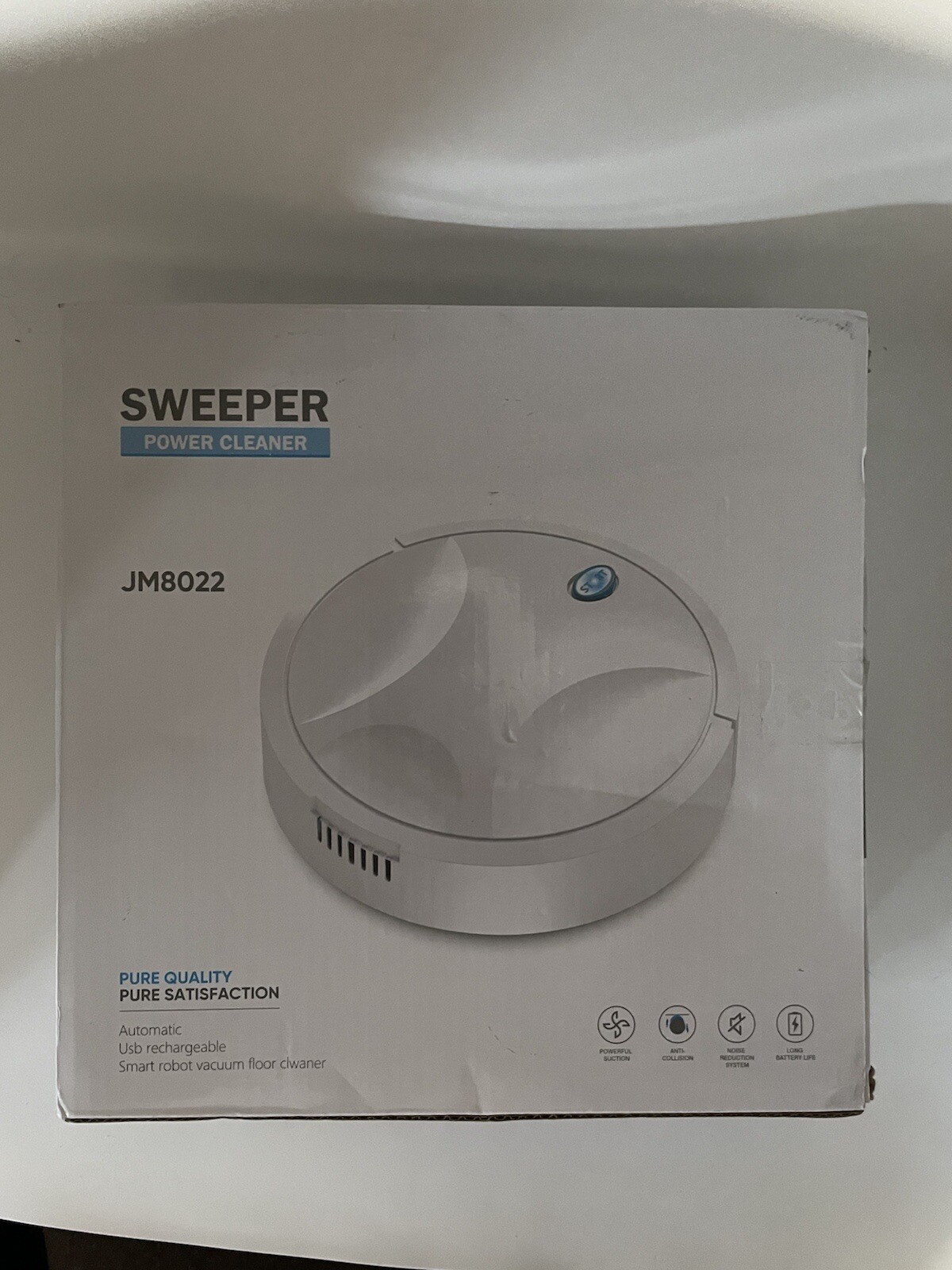 SMART ROBOT VACUUM FLOOR CLEANER SWEEPER AUTOMATIC USB RECHARGEABLE BOX JM8022. Does not appear to be used. Perfect for small apartment or dorm room.