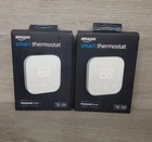 Upgrade your home's heating, cooling, and air system with the Amazon Smart Thermostat. This programmable thermostat comes in white and is compatible with Amazon Alexa, making it easy to control your home's climate with voice commands. The thermostat also features Wi-Fi and app control, allowing you to monitor and adjust your home's temperature from anywhere. Designed with the user in mind, the Amazon Smart Thermostat is equipped with remote control, touch, and voice control options for easy and convenient operation. This thermostat is perfect for those looking to enhance their home's comfort and efficiency. Get yours today! One box is factory sealed and the other is open. 34.97 Each !