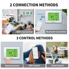 Smart Thermostat, Compatible with Alexa and Google Assistant, 7 Day Programmable WiFi Thermostat for Single Stage 1 Heat/1 Cool HVAC, APP & Voice Control, 24VAC Power, C-Wire Required, White Product Details Brand: MechDoc Product Dimensions: 1.2"D x 4.65"W x 3.47"H Special Feature: Programmable, Temperature Control, Temperature Display, Fan Control Color: White Brand: MechDoc Product Dimensions: 1.2"D x 4.65"W x 3.47"H Special Feature: Programmable, Temperature Control, Temperature Display, Fan Control Color: White Specific Uses For Product: Air Conditioner, Furnace, Heat Pump, HVAC Power Source: 24VAC Voltage: 24 Volts Shape: Rectangular Display Type: LCD Screen Size: 3.47 Inches Control Type: Button Control Control Method: Voice Connectivity Protocol: Bluetooth, Wi-Fi Mounting Type: Wall Mount Style: Modern Backlight: Yes UPC: 008574046882 Manufacturer: Dongguan Meiqi Intelligent Technology Co. Ltd Item Weight: 8.1 ounces Country of Origin: China Item model number: QD-HVAC10(W) Date First Available: September 3, 2023 Wide Range Application - Works with 85% Systems: Single Stage 1 Heat and 1 Cool HVAC Systems of Gas or Oil Heat, Electric Furnaces, Heat Pump without Aux Heat, Cool/Heat only System (Floor or Wall Furnaces). Not support 110V/220V system! - Before buying, check #4 main image to see the wiring diagrams. Our thermostat only support conventional systems and heat pump systems with no more than 6 wires of RC, RH, C, G, W/O/B, Y. (RC/RH: cooling/heating power; C: C wire; G: fan switch; Y: Cooling switch; W: heating switch; O/B: heat pump changeover valve). Take off your thermostat, take a photo of the wire connections for later reference. Use sticky tags to label each wire as you disconnect it. Easy Programming and Energy Saving - Take advantage of the 7-day with 4 periods per day flexible programming schedules to optimize your energy consumption and fit your life. Easy-to-Use-APP - Choose from the Smart Life app, Alexa app or Google Assistant to control your Wi-Fi thermostat anytime, anywhere. (Only Support 2.4 GHz Wi-Fi, NOT Support 5 GHz Wi-Fi) Easy Operation and Reliable- 6.8 sq. inches Big backlit digital display and easy controls make for a user-friendly experience. And designed for long-lasting performance, our Wi-Fi thermostat offers reliable performance and precise temperature control. Find an extra wire as C wire - If you dont have a C wire, to check if has an extra wire can act as C wire, it might be pushed into the wall or wrapped around the wire bundle. Found it and connect this unused wire to the C terminal on our new thermostat, connect the other end of the C wire to the C terminal on the control board of your heating/cooling system. Use G wire as C Wire - If has no extra wire as C wire, you could use G wire as the C wire for furnace that burns gas or propane (this solution does not support furnace that burns oil) and heat pump WITHOUT backup (auxiliary) heat. Find the wiring terminals G, W (or Y), C on the furnace or air-handler control board, unscrew the G terminal and move the G wire to C terminal to act as C wire. Then use a jumper wire (not included but will have) to connect the W (or Y) terminal to the G terminal for the fan control. Using the G wire in this manner means you cant run your system fan continuously. The fan will run when the system is heating (when connecting to W) or cooling (when connecting to Y). Cautions!!! - Please check the system compatibility carefully before buying! Please read the installation manual especially the wiring diagrams carefully before installing. Wrong wiring might damage the thermostat! For example, if the thermostat cannot turn on when installing, please first check if it is compatible with your system. If compatible, please check if your 24VAC power is ok or maybe you need to hire a local HVAC Tech to install the thermostat for you. Note - The backlight of the LCD will automatically shut off if no operation in about 30 seconds. If you press any key of the thermostat, the backlight of the LCD will illuminate again. The system clock of the thermostat will automatically synchronize with the cellphone when Wi-Fi connected successfully. Come and enjoy effortlessly controlling your home's temperature from anywhere by MechDoc smart WIFI thermostat. It's our best wish to bring you convenience for your daily life.Compatible Systems: Single Stage Heating & Cooling (Yes) 1 Heating 1 Cooling System (Yes) Typical 1H/1C system with 1 transformer or 2 transformers (Yes) Typical 1H/1C heat pump system (Yes) Typical heat-only system with/without fan(Yes) Typical cool-only system (Yes) Gas or Oil Heat (Yes) Electric Furnace (Yes) Heat Pump without Auxiliary or Emergency Heat (Yes) Millivolt (Yes) C-wire Required (Yes)Features: 7 Day Programmable Smart WiFi Thermostat with 4 time periods each day. Separate heating and cooling swing (cycle rate) adjustment. 5 minutes compressor delay protection (selectable on or off).Fahrenheit or Celsius scale selectable. Temperature calibration. Fan mode selectable between always ON and Auto. Compatible with Alexa and Google Assistant.Automatic reconnection after network interruption WiFi and Bluetooth dual mode connection. Memory function.Specifications: Operating ambient/Display range : 23℉ to 113℉ (-5℃to 45℃) Operating humidity: 90% non-condensing maximum Control range of temperature: 45℉ to 90℉ (7℃ to 32℃) Display accuracy: ±1℉ or ±0.5℃ Load rating: 1 amp per terminal, 1.5 amp maximum all terminals combined Power source: 18 to 30 VAC, NEC Class II, 50/60 Hz for hardwire (common wire) Connectivity - Wi-Fi, 802.11 b/g/n @ 2.4 GHz & Bluetooth 4.2, not support 5 GHZFCC Authorization ID: 2BBA7HVAC10W