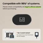 Smart Thermostat - Smart Thermostats for Home with App Control, Multi-Schedule Programming, Geofencing, Easy DIY Setup, Programmable Wi-Fi Thermostat, Black Product Details Brand: degrii Model Name: Smart Thermostat Product Dimensions: 0.86"D x 5.7"W x 3.2"H Controller Type: iOS, Android Special Feature: Programmable Wi-Fi Thermostat with Multi-Schedule Programming, Smart Thermostats for Home with Remote App Control, Thermostat for House with Smart Geofencing, Wi-Fi Thermostats for Home Integrates with 95% of HVAC Systems See more Brand: degrii Model Name: Smart Thermostat Product Dimensions: 0.86"D x 5.7"W x 3.2"H Controller Type: iOS, Android Special Feature: Programmable Wi-Fi Thermostat with Multi-Schedule Programming, Smart Thermostats for Home with Remote App Control, Thermostat for House with Smart Geofencing, Wi-Fi Thermostats for Home Integrates with 95% of HVAC Systems Color: Black Specific Uses For Product: Heat Pump, Furnace Temperature Control Type: Heating and Cooling Connectivity Technology: Bluetooth, Wi-Fi Included Components: Mounting Screws with anchor×3, Degrii Smart Thermostat×1, Back Panel×1, Wire Label×1, Quick Start Guide×1 Power Source: AC Adapter Voltage: 24 Volts Shape: Rectangular Display Type: LED Finish Type: Glossy Control Type: App Control, Touch Control Control Method: App, Touch Connectivity Protocol: Wi-Fi Mounting Type: Wall Mount Style: Upgraded Smart Thermostat Backlight: Yes Specification Met: FCC, IC Wattage: 2.4 watts Manufacturer: degrii Item Weight: 13.4 ounces Item model number: THM-C Date First Available: April 11, 2023 Energy Savings Galore: The Degrii smart thermostat offers up to 27% reduction in heating and cooling costs with its intelligent scheduling. Besides, stay informed with detailed energy consumption reports, helping you make smarter decisions about your heating and cooling usage Universal Compatibility: Degriis advanced programmable Wi-Fi thermostat seamlessly integrates with 95% of HVAC systems, including forced air, heat pumps, radiant boilers, and more. Its the go-to solution for homeowners seeking a smart upgrade Easy Remote Control: Manage your home climate from anywhere with the Degrii OS app. Whether youre at work or on vacation, adjusting your Wi-Fi thermostats for home is at your fingertips, giving frequent travelers and busy professionals peace of mind Geofencing Technology - Experience unparalleled comfort with Degriis geofencing feature. Your thermostat for house auto-adjusts based on your proximity to home, ensuring a warm welcome without wasted energy Child Lock Safety: With a built-in child lock feature, this smart thermostat prevents unintended adjustments, making it safe for homes with curious children. A great choice for families seeking a blend of safety and advanced temperature control Multi-User Access: Degrii supports device sharing, so every family member can have control over their comfort. Whether its adjusting settings for the elderly or accommodating guests, everyone can enjoy a personalized experience Quick DIY Installation - With the Degrii OS apps AI wizard, installation is a breeze and takes only 15 minutes. Plus, our customer service team stands ready to assist, making this smart thermostat for house a great pick for DIYers and tech aficionados
