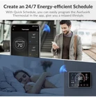 95% High Compatibility: This thermostat comes with a C-cable adapter and is compatible with heating and cooling systems, cooling-only systems, heat pump systems and more. It does not work with heating systems only (no C-cable) or high voltage systems (120V-240V). Easy to Install: installation of the thermostat takes less than 30 minutes. A user manual is included, simply follow the step-by-step installation guide. Remote Control: easily control your thermostat wherever you are, as long as your phone has the Smart Life App. Energy Savings: Save more than 25% of your annual heating and cooling costs and view your energy savings in the Smart Living app to create a greener home. 24/7 Programming: programmable thermostat customisation routines that automatically adjust the temperature without manual changes. Intelligent Scene: 6 touch buttons for easy switching between modes, easy to operate. Family sharing: "Join a family" in the Smart Life app, family members can also easily view the current thermostat settings. Weather Display: Comes with weather conditions to the air last intervention, easy to understand the weather in real time, the application can also see the UV conditions to the air last intervention and air quality, humidity, according to the weather to the air last intervention to adjust the thermostat.