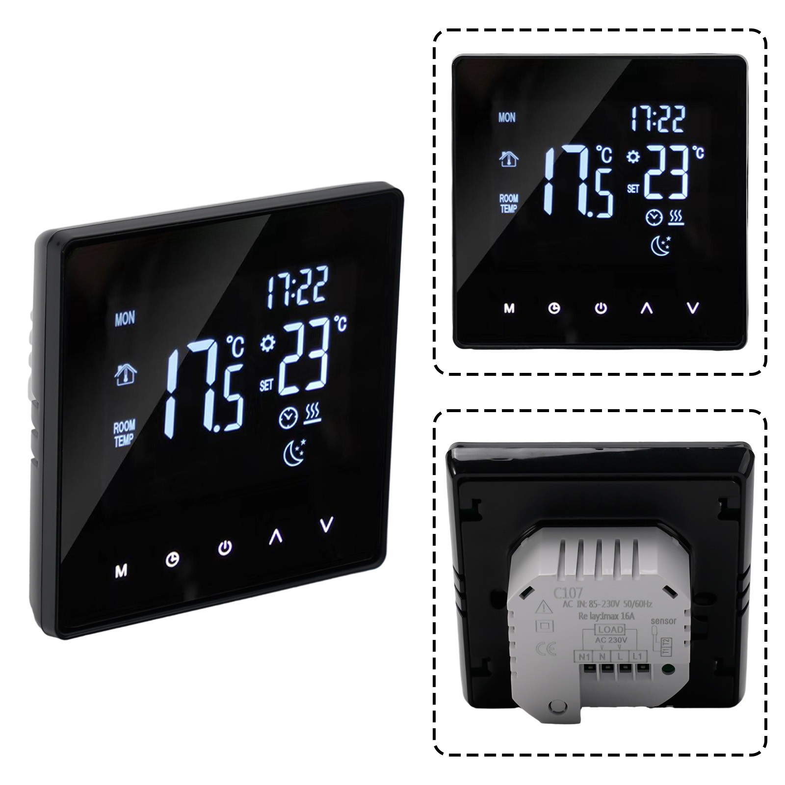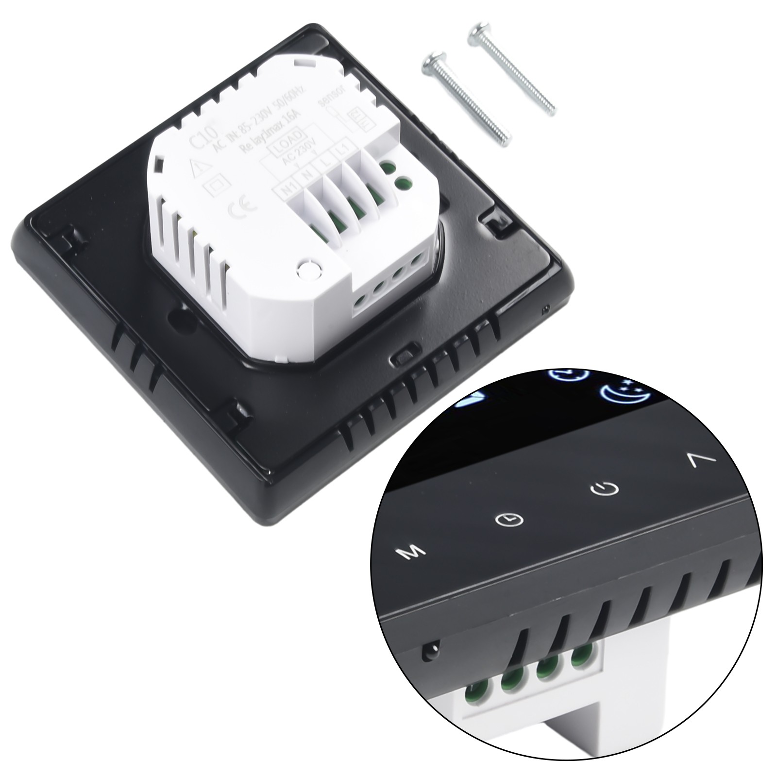 Product Description Features: Touch screen LCD touch display: practical beautiful touch screen buttons, scratch-resistant. Large LCD touch screen display with backlight, easy to read. Weekly programmable: 5 + 2/ + 1/7 days, the weekly calendar of the programming interface can be set to different times temperatures according to time modes. Memory function: no power failure, data storage when device is turned off. Precise temperature: internal sensor floor sensor, noticeable ambient temperature floor temperature. Automatically get the temperature, 1 ℃ accuracy. Manual automatic mode: you can freely choose the manual mode or automatic mode for different purposes. Specifications: *1. Temperature sensor: *2. Temperature accuracy:±1°C *3. Power consumption: <1w *4. Voltage: AC 230V ,50/60HZ *5 . Load current : 3A / 16A * . Temperature setting : 5-90°C *7 . Key : Touch key Package Contents: 1 * Temperature controller, 1 * instructions(Excluding sensors) Note: 1. The real color of the item may be slightly different from the pictures shown on website caused by many factors such as brightness of your monitor and light brightness. 2. Please allow slight manual measurement deviation for the data. Payment Payment must be completed within 5 days. If you have any problems about payment, please contact us via ebay message. Delivery details We only ship to confirmed ebay Order addresses. Please comfirm that your Order address is in line with your shipping address. Please kindly note that the c ombined shipping is not provided because the shipping fee is calculated by weight. Also, the each additional item means exactly the the same color and size. It takes about 7 -15 working days to US; about 10-30 working days to other countries. Transit time may be a little delayed because of the bad weather and customs inspection . If you do not receive your item within 30 working days since payment finished, please contact us immediately for further assistance. Contact us We strive for 100% customer satisfaction! Positive Feedback is very important to us. If you have any questions, p lease feel free to contact us via "Ask seller a question" . We will reply your email within 24 working hours.