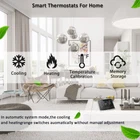 【Home Programmable Thermostat】Our app thermostat is made of the high quality ABS (anti-resistance) material and metal. Adopting LCD color screen touch design, modern and fashionable appearance, and equipped with wifi intelligent voice control module, multi-scene DIY settings, make your and your family's life more comfortable and better. Tip: our heat pump thermostat can only be connected to heat pump equipment, which can cool and heat. 【Smart Thermostat Wifi】Home thermostat WiFi function supports android and ios system. With the smartphone app, you can remotely control your home temperature and settings from anywhere, providing a convenient operating experience. Family members can also easily view the current thermostat settings by "joining family" in the smart life app 【Intelligent DIY Scene & Weather Setting】Programmable thermostat customization program, automatically adjust the temperature, no need to change manually. Six touch buttons for switching four programmable modes, easy to operate. You can also DIY set your favorite mode, such as vacation mode, fan cycle, etc.. The home thermostat comes with weather conditions, adjusting the thermostat according to the last intervention of the weather conditions on the air 【Compatible & Easy to Install】This thermostat comes with a c-wire converter that is compatible with cooling systems, heat pump systems, etc. If your previous thermostat did not use a C-wire, you can use the C-wire converter directly to power your new thermostat when installing this product. Installation of the thermostat takes less than 30 minutes, simply follow the step-by-step installation guide (refer to the instruction manual for specific installation steps) 【Energy Saving & Environmental Protection】New heat pump thermostats with automatic temperature control in automatic system mode maintain a constant temperature in your home 24 hours a day without the need for manual switching. Save over 28% on your heating and cooling costs every year, and you can view your energy savings in the Smart Living app to create a greener home 【After-sales Service】 We offer a One-Year Warranty. If you have any questions about heat pump thermostat or encounter other problems, please feel free to contact us via email or Q&A, and we will provide a response within 12 hours. Customer satisfaction is our unremitting pursuit