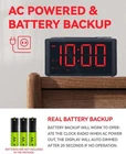 Alarm Clock AM FM Radio AC & Battery Powered Display Dimmer Sleep Timer SmartSet Description: 4.17-inch Large LED Screen: The large LED screen ensures that you can read the time effortlessly anywhere in the room, and the dimmable feature makes it easy to find your comfortable screen brightness. This device is perfect for placing anywhere in the room. AM/FM Radio with Preset: This digital alarm clock radio is equipped with AM/FM functionality, allowing you to wake up or unwind with your favorite radio stations. This device provides you with 6 one-touch preset buttons, you can easily preset 6 AM stations and 6 FM stations. Dual Alarm System: Accommodate different wake-up schedules with the dual alarm feature. Set multiple alarms throughout the day or for different members in your household, ensuring everyone wakes up on time. 3 Alarm Sounds: Choose from 3 different alarm sounds according to your preference. Customize your morning alarm tone to start your day with a pleasant sound that suits you. Snooze & Sleep Timer Features: Enjoy the luxury to sleep a little more with the snooze button or set a sleep timer to let your radio play as you drift to sleep, making bedtime as relaxing as possible.