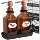 Superb Quality Soap Dispenser - Made Of thickened High-Quality Glass, natural and safe to fill with a variety of room-temperature daily use liquids. Anti-fingerprint, the Sturdy Pump Is Made By Premium Brushed Copper Color Soap Dispenser Pump Which Can Kept Long Lasting Bright That Not Easy Corrode Or Rust. Reusable & refillable soap dispenser set helps you get organized. Unique Soap Dispenser Set - Our hand soap pump set includes a high quality tray that is perfect for keeping your countertops clean and organized. the extended tray is designed to hold more kitchen and bathroom accessories while keeps the bottles in place. The sturdy tray keeps your partner from moving the bottles all around the sink and doesn’t take up much room, make your kitchen area look more tidy and brings joy daily. UV PROTECTION - Amber brown colored glass provides ultraviolet protection, especially important for aromatherapy, essential oils & herbal treatments to preserve beneficial effects. Also fits any soap, can be use for liquid soap, dish soap, lotion, aromatherapy essential oil blends, shampoo, body wash, hand soap, massage oils. A reusable design makes these soap dispensers a superior green alternative to pollutant plastic soap dispensers. Long-Lasting ANTI-RUST Pump: Our kitchen soap dispenser set use New thickened stainless steel Brushed Copper Color pump, after 10,000 press tests, will not get stuck in daily use. Anti-corrosion design of curved liquid outlet tube, undergone strict tensile test and will not fall out and spray. Your dish soap dispenser no drip mess after dispensing soap, can be used for a long time. Value 2 Pack & 12 Stickers & 1 Tray - Value 2 Pack Glass Soap Dispensers. Reusable and refillable, Eco-friendly green, money-saving. Comes with Elegant Design 12Pcs Waterproof Stickers and one matching tray. We do not only offer the top grade-A quality products but also provide 1 years warranty to get the money back or get a new one.