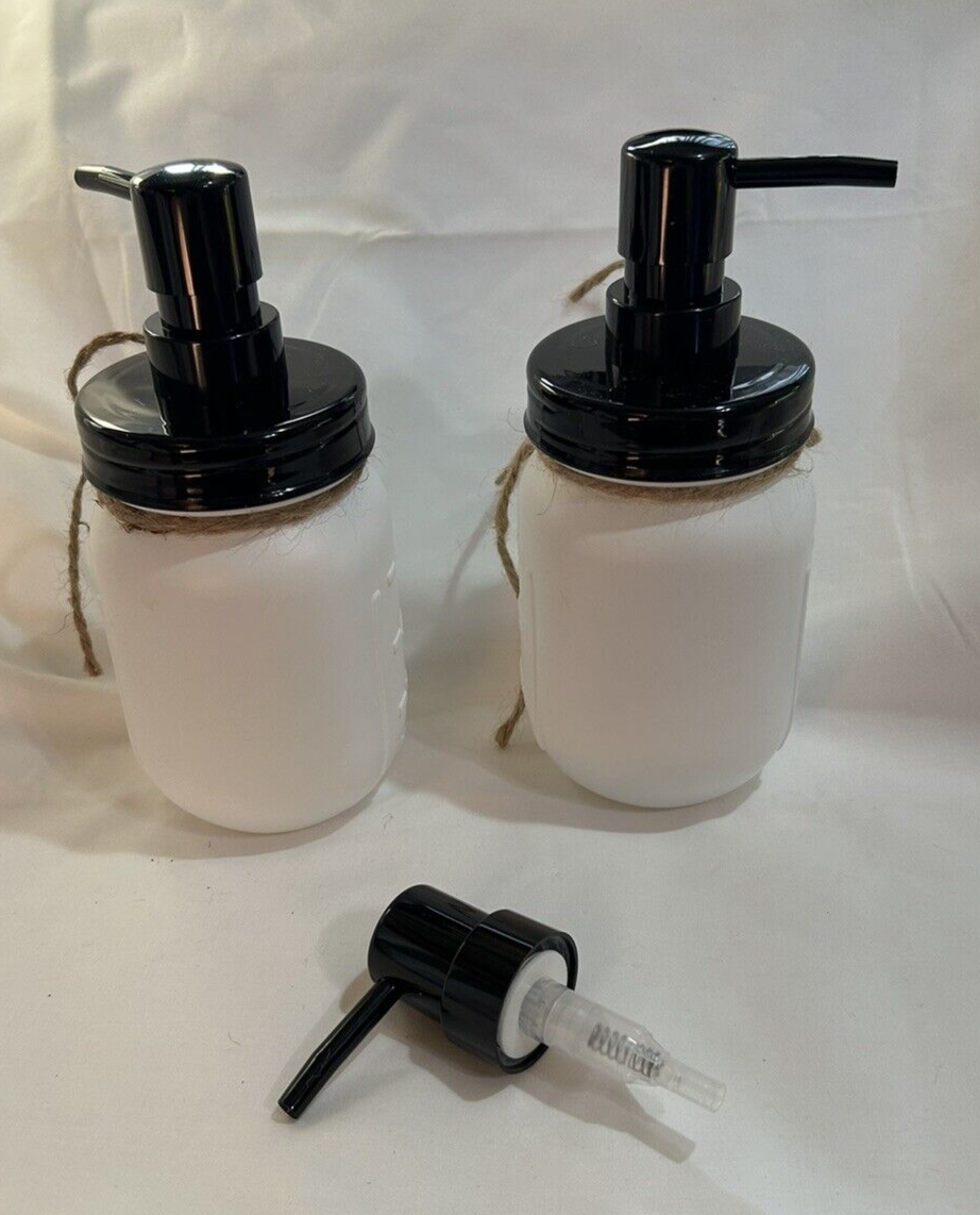 Soap Dispenser 2 Pack Dish Soap Dispenser Hand Soap Dispenser 16 oz Black Pumps HANDS & DISHES - With the Hands and Dishes label, you’ll never mix up or get asked “Which Soap is Which?”. The label is not only good for distinction but also looks beautiful. FARMHOUSE STYLE - This farmhouse soap dispenser set is both decorative and practical. Whether you're looking for any farmhouse kitchen decor or modern farmhouse bathroom decor, this rustic soap dispenser adds that special touch to everyone's interior. VERSATILE & REUSABLE - These can be used anywhere in the house. From soap dispenser bathroom to dish soap dispenser for kitchen. This glass soap dispenser with pump can be used wherever soap is needed. EXCEPTIONAL QUALITY - The kitchen soap dispenser and bathroom soap dispenser are made of glass, matched with black plastic pumps, will not rust, can be refilled, and is reliable. Comes with extra Pump NEW! Thank you for the interest in the item listed. I take detailed pictures to paint the best picture of the item. Please don't hesitate to ask for more details or more specific pictures. All of my items are generally odor free...non smoking and free from mildew smell. RETURNS: Your 100% satisfaction is priority to me! I accept returns on items and will refund buyer on cost of item as long as the item is returned in the same condition as it was originally shipped. SHIPPING: I ship within 3 business days (Monday-Friday), most of the time within 24-36 hrs from Time of purchase. I use priority or first class in most cases so you receive the item fast. I WILL ONLY SHIP TO THE ADDRESS PROVIDED THROUGH EBAY. If a change of address is requested, the order will be canceled. NOTE- Shipping prices are provided directly through USPS. I ship the most affordable way possible for the buyer. I also will combine shipping. If combining multiple items, weight and size of packing will change most likely. Purchase and pay for the items you want, and the difference in shipping price will be refunded.