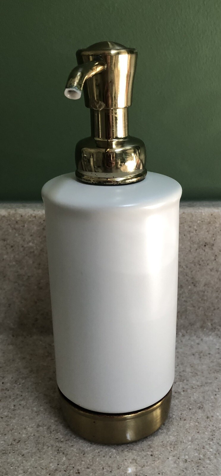 This ceramic Soap Dispenser is the perfect addition to any bathroom. Its sleek design and white color make it a versatile piece that can easily blend in with any decor. May have some residual soap in it.