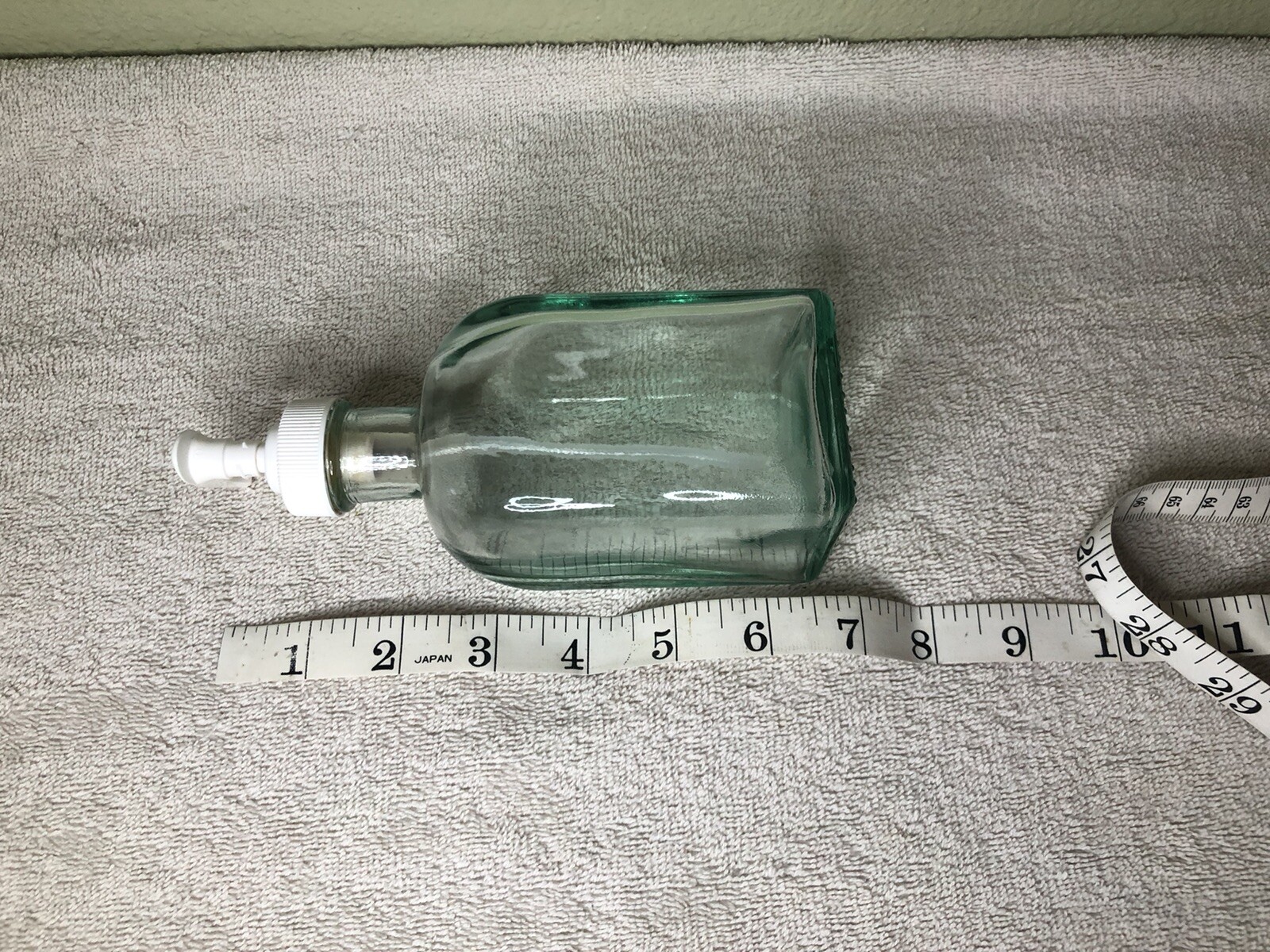 Features:SmoothStyle:FarmhouseCustom Bundle:NoRoom:Bathroom, KitchenSet Includes:Soap DispenserCountry/Region of Manufacture:UnknownItem Height:6 inUPC:Does not applyModel:Glass bottle with plastic pumpMPN:N/AColor:ClearAssembly Required:YesType:Soap Dishes & DispensersTheme:Rustic FarmhouseFinish:PolishedDepartment:AdultsItem Width:2”Material:GlassBrand:UnbrandedCharacter:N/ACharacter Family:N/Agtin13:Does not applyMounting:Free StandingSeller Notes:“Used but good condition”Number in Pack:1Number of Items in Set:1Item Length:2”Personalize:NoInstallation:Table topCalifornia Prop 65 Warning:N/A