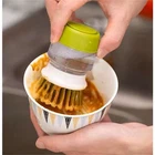 Introducing Soap Dispenser Palm Dish Brush with Storage Bracket is a must-have kitchen cleaning tool designed for effortless dishwashing. Featuring a built-in soap dispenser, an ergonomic palm grip, and a convenient storage bracket with a drainage base, this scrub brush ensures a mess-free and efficient cleaning experience. With a strong, non-scratch soft bristles brush and a replaceable brush head, it’s the perfect solution for tackling grease, food residue, and stubborn stains on dishes, cookware, and kitchen surfaces. ⭐ Thank you for your purchase! If you’re happy with your item, please consider leaving us a review. Your feedback helps us grow! 2-in-1 Soap Dispenser Brush: Built-in soap reservoir dispenses soap with a simple press for effortless dishwashing. Non-Scratch Bristles: Tough on stains but gentle on non-stick cookware, glassware, and delicate dishes. Ergonomic Palm Brush: Designed for a comfortable grip, reducing hand strain while scrubbing, the size is 3.5 * 3.5 * 5.1 inch (9 * 9 * 13cm). The top is made of silicone material, which automatically dispenses liquid when pressed, making it effortless and easy to use. The middle part is made of high-quality PP with rounded curves, making it more comfortable to hold. The transparent body allows you to grasp the remaining soap at any time. The bottom is made of a toughness ABS fine brush, which can efficiently clean fine particles and remove residual stains. Storage Bracket with Drainage Base: Unscrew the cap to refill it with dish soap and press to dispense the right amount, lock it clockwise, and the installation can be completed. Gently press the silicone button at the top during use, and the manual scrubbing brush will automatically spray soap, responding quickly. Keeps the brush upright, allowing excess water to drain for a cleaner and more hygienic kitchen. Compact & Space-Saving Design: Neatly fits by the sink, reducing clutter and keeping cleaning tools within reach. Ideal for cleaning dishes, pots, pans, sinks, and kitchen surfaces efficiently. High-quality & BPA-Free Materials, Safe, durable, and designed for long-term use. Perfect Gift for Every Kitchen: A must-have tool for quick and hassle-free cleaning, making dishwashing easier and more efficient. Two color options adding more cleaning to the kitchen.