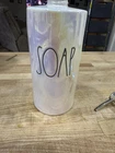 The Rae Dunn Soap Dispenser is a stylish addition to any bathroom decor. Made of ceramic in a multicolor design, this free-standing dispenser features a suction installation for easy placement on countertops or sinks. Perfect for adults, this dispenser does not require assembly and comes with just the dispenser itself. The Rae Dunn brand is known for its chic and minimalist designs, making this soap dispenser both functional and aesthetically pleasing in any bathroom setting.