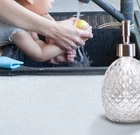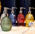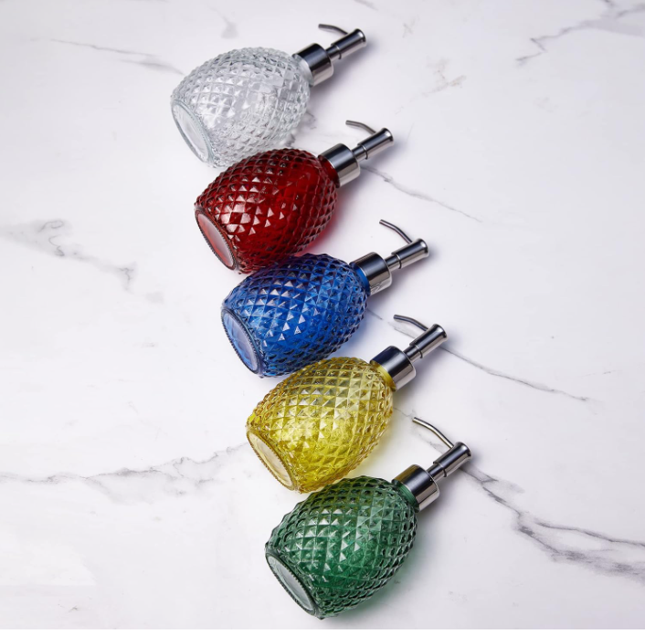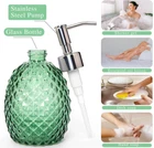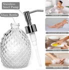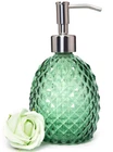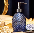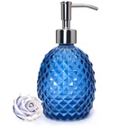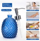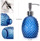Soap dispenser with pump bottle Lotion bathroom Hand Shower Sink Dish Blue 12oz SOAP DISPENSER SPECIFICATIONS: This soap dispenser is made of clear glass and has a capacity of 12oz. The pump of the dish soap dispenser is made of stainless steel, it twists on easily and fills the lotion. Refillable glass soap dispenser is an economical and smart choice. BEAUTIFUL COUNTERTOP DECORATION: Ditch the ugly plastic containers! The diamond-cut facets of this glass soap dispenser reflect an elegant glow in all directions. Clear lotion dispenser is not only practical accessories for bathrooms and kitchens, but also beautiful decorations. MULTIFUNCTIONAL LIQUID SOAP DISPENSER: The glass soap dispenser can be used in any corner of the home for any liquid. The soap dispenser can be filled with hand soap, laundry soap, dish soap, body wash, shampoo, toner. The clear glass soap dispenser makes it easy to see the capacity and is very user-friendly. SOAP DISPENSER WITH PUMP: The pump of the hand soap dispenser is easy to squeeze and spray the lotion; the tip of the spout is inclined downward to avoid the lotion splashing into the air. QUALITY GUARANTEE: This is a professional glass soap dispenser designer, this beautiful soap dispenser is a perfect accessory for home, hotel and other places.