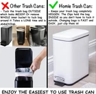 β π¦π’ππ§ πππ’π¦π πππ - This is the quietest trash can you will use with no annoying noises. Gentle lid makes no noise, simple and automatic garbage bin open and closing. β ππ‘π§π πππ π¦πππ£ ππππ£π¦ - No more having to keep fixing your bag because it has fallen into the trash can. Bags never fall into tiny bin, touch-less design, great for any room, office. β πͺπ’π₯ππ¦ πͺππ§π ππ‘π¬ πππ - Save more than $15 on not having to buy custom liner bags to fit your trash can. Use any old cheap bag lying around. Any bag snugly fits the bin and stays hidden inside. β πππ¦π¬ π§π’ πππππ‘ - Homie has ensured this trash can will take no time to clean. Just remove the liner, wash it, and throw it back in without harming the metal. Removable plastic liner simply washed, best mini silver dustbin or wastebasket β π¦π πππ πππ§ππ₯π’π’π π§π₯ππ¦π πππ‘ - Built with durability in mind, this trash can will last you for years. All of the material used a premium grade. Durable pedal and construction, 11.5" H x 11.5" L x 5.5" W size, slim and skinny Product Description Soft Close Lid Use the trash can peacefully with no noise when it closes! The soft close lid gets rid of the constant annoying banging sound of the lid closing you will hear from other trash cans. Anti - Bag Slip Clips Simply clip bags into the inside of the trash can, and they will never fall in. And you get the added benefit that the bag doesn't need to be tucked around the top of the can, meaning that it won't be visible at all when the can is closed. Your trash can will look cleaner than ever! Works With Any Bag The clips work with almost any bag you think of to securely hold it in place. This saves you tons of money because you don't have to buy special fitted bags for your trash can anymore! Any bag will do! Quality Construction Make use of the durable steel step and lid for repeated uses without any problems. A great slim size for the trash can makes it great for bathrooms. Soft Close Lid Anti - Bag Slip Hooks Works With Any Bag Quality Construction