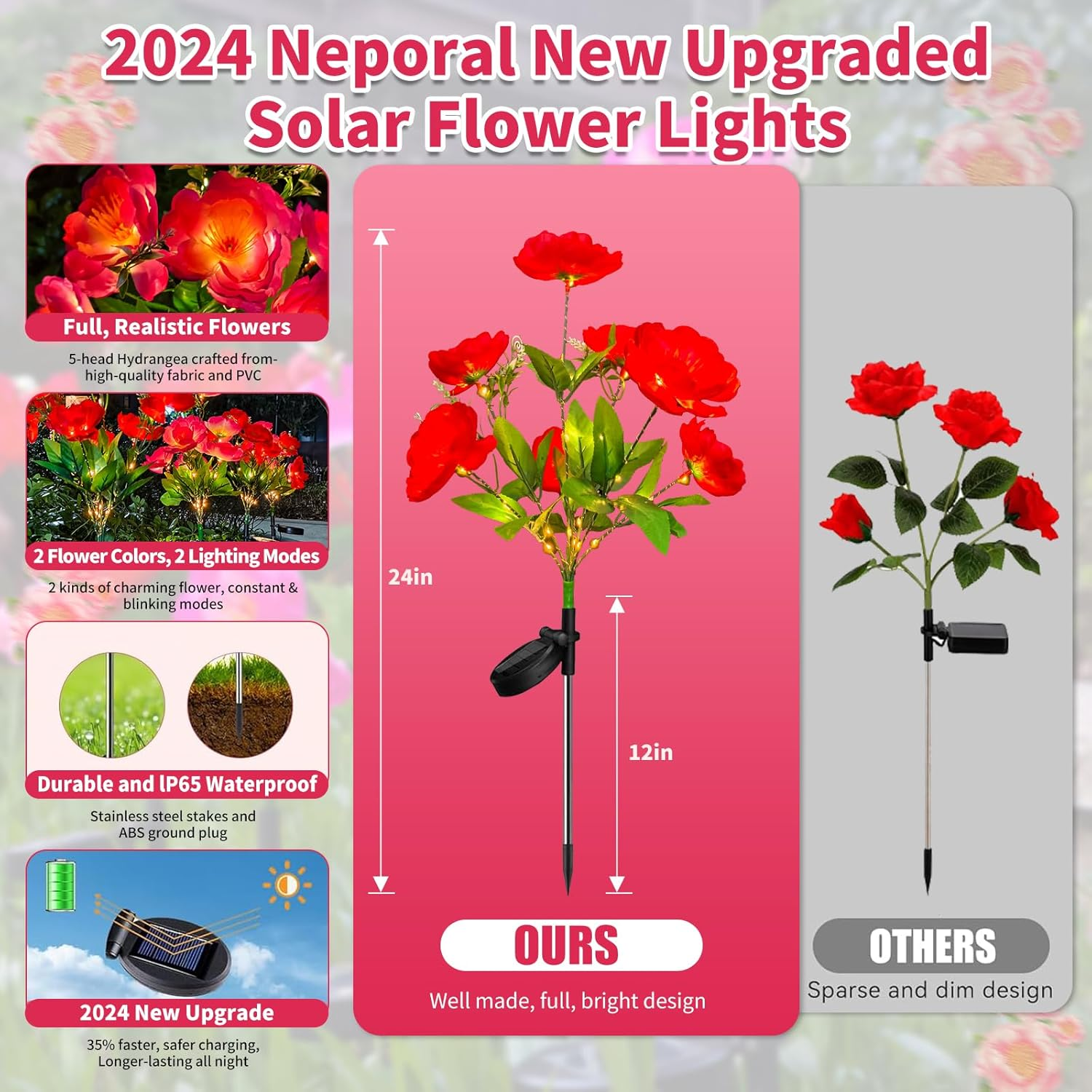 Store New Arrivals Add to Favorite View Feedback Contact Solar Flowers Outdoor Waterproof Camellia,4Pk 7-Stem Garden Solar Lights Decorative, 2 Decor Lighting Modes, Solar Powered Garden Decor, Solar Yard Decor Description Item model number solar flowers Item dimensions L x W x H 1 x 1 x 1 inches Number of Light Sources 4 Number of Items 4 Color warm white Light Color Warm White Material Acrylonitrile Butadiene Styrene (ABS) Batteries 1 Lithium Ion batteries required. (included) Item Weight 1.46 pounds Product Dimensions 1 x 1 x 1 inches Theme Floral Frame Material Acrylonitrile Butadiene Styrene (ABS) Recommended Uses For Product Decor Neporal pink solar flowers transform your garden into a captivating oasis of color and light: under the moon's gentle gaze, the solar lights outdoor decorative sway with the breeze, casting ethereal shadows that dance in harmony with the night, painting dreams upon the darkness. 【7-Stem Pink and Red Solar Flowers Stakes】Neporal's latest 7-head solar flower lights feature a beautiful mix of pink and red flowers, creating a vibrant and eye-catching display day and night. This color combination enhances your garden decor, bringing warmth and charm to your outdoor space. Crafted from durable PVC, Neporal's solar garden stakes are lifelike and fade-resistant. 【Flower Garden Decorations Outdoor】Featuring two lighting modes - constant and blinking mode - Neporal's solar flower stakes are perfect solar yard decorations outdoor, illuminating your home with enchanting charm after dark. With their romantic and bright LED lights delicately woven into adjustable stems, these garden solar lights decorative allow you to effortlessly shape your garden decor to create a magical ambiance. 【2024 New Solar Light Flowers For Outside】Neporal's led outdoor solar flower lights, perfect for solar yard decor, have undergone an upgrade, now featuring a solar panel with a 35% higher conversion rate. This enhancement ensures faster and safer charging, even during cloudy days. Completely solar powered, equipped with a 600mAh built-in battery, Neporal's garden solar lights for plants automatically charge during the day (4-6 hours) and provide illumination throughout the night (10-12 hours). 【Easy 1-Minute Installation】Neporal's outdoor solar decorations for yard require no tools or assistance for installation. Everything you need is included in the package. Simply connect the solar panel to the stake, turn on the switch, remove the film, and insert the solar lights for plants into the ground. 【Hold Up in Bad Weather】Neporal's waterproof outdoor decorations for yard solar boast excellent IP65 performance, ensuring durability even in outdoor garden settings. Crafted from durable PVC materials, these solar lights are perfect for enhancing your garden decor for outside. With an aluminum alloy stake, Neporal's solar plants can be securely anchored to the ground, preventing breakage or loss, especially in windy weather conditions. 【Perfect Garden Gift & Solar Garden Decor for Outside】Elevate your outdoor space with Neporal's Lilac solar lights outdoor decorative, ideal for garden decor, outdoor decor, yard decor, patio decor, and plant pot decoration. These unique gardening gifts are perfect for women and anyone who loves to garden, including moms, grandmas, dads, and friends. Product Description BUY 2 GET Extra 10% Off, Buy 3 GET Extra 15% Off Add to Cart Add to Cart Add to Cart Add to Cart Add to Cart Add to Cart Add to Cart Customer Reviews 3.9 out of 5 stars 19 4.1 out of 5 stars 37 4.5 out of 5 stars 16 4.5 out of 5 stars 2 4.1 out of 5 stars 54 4.1 out of 5 stars 1,878 4.1 out of 5 stars 21 Price $33.89 $ 33 . 89 $34.89 $ 34 . 89 $33.89 $ 33 . 89 $34.89 $ 34 . 89 $32.39 $ 32 . 39 $32.29 $ 32 . 29 $34.39 $ 34 . 39 Color Red + Pink Rose Lilac Warm White Pink Golden Pink Two Lighting Modes ✔ ✔ ✔ ✘ ✔ ✘ ✔ Stem adjustable ✔ ✔ ✔ ✔ ✔ ✔ ✔ IP65 Waterproof ✔ ✔ ✔ ✔ ✔ ✔ ✔ Max. Working Time 12 hrs 12 hrs 12 hrs 12 hrs 12 hrs 12 hrs 12 hrs Full Charging Time 4-6 hrs 4-6 hrs 4-6 hrs 4-6 hrs 4-6 hrs 4-6 hrs 4-6 hrs Package Choice 4 4 4 4 2/4 2/4 4 ABOUT US We offer the best prices around on high quality products. Our E-store includes media such as books, movies, music and games while offering electronics, toys, sporting apparel, clothing, tools, general home, garden items and more. SHIPPING We are always working hard to ensure your package arrives as soon as possible. Please understand that some factors like weather, high postal traffic, and the performance of shipping companies are outside of our control. We offer free shipping to the lower 48 states and ship within 2 business days of payment, usually sooner. We do not accept P.O. Boxes. Please provide a physical address. For shipping outside of the continental USA, we only use eBay's Global Shipping Program.The item is shipped to KY and then sent to the rest of the world. International customers are responsible for all duties and taxes. Continue to check out in order to calculate costs for shipping the item to your country. Messages regarding eBay's Global Shipping Program MUST be directed at eBay EXCLUSIVELY. RETURNS We offer a 30-Day Return Policy on items which you are not completely satisfied with. You have the option for a full-refund or an exchange of the item. No returns are available on items shipped outside of the USA. PAYMENT We accept PayPal. CONTACT US This page content is yet to come Please ad us to your favorite seller and visit again later Thank You CUSTOMER SATISFACTION We try our very best to make sure every customer is completely satisfied. If there's a problem, message us! We're happy to help. WE ACCEPT Copyright © 2021 AutoDS. | All Rights Reserved
