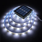 Specifications: Material: Plastic, resin Light source: Super Bright 2835 LED LED QTY: 180 LED Light Color: cool white Light modes: 8 modes(combination, in wave, sequential, slo glo, chasing/flash, slow fade, twinkle/flash, and steady on) Charging time: 6~8 hours Working time: 10-12 hours Operation temperature: -20℃ ~ +60℃ Stroage temperature:-40~80℃ Waterproof: IP65 Light length: 6 m/19.6ft Solar panel: 2V 400mA 0.8W Battery Type: Ni-Mh batteries, 1800mAh, AA size Solar panel size: 8.5*8.5cm/3.4*3.4 inch(L*W) Net weight: 0.62lb Package: 1 x LED Solar strip light 1 x Ground spike 1 x Solar panel Warm Notice If the solar lights become dim, it means that the solar strip lights has a low battery level, and it must be charged in sunlight as soon as possible, otherwise the solar powered strip lights will stop working. 【A Sustainable Solution for Outdoor Decorative Lighting】For a long time, lights have been utilized in many indoor lighting scenarios, and they are the protagonists of decorative lighting. Now, we are moving LED strips outdoors, using solar energy storage to automatically light up at dusk and automatically recharge at dawn. This doesn't require wiring or electricity bills, making it a sustainable solution for outdoor decorative lighting 【Upgraded Version, Longer, Larger, and Stronger】This solar powered light strip has been upgraded with a larger solar panel size of 3.5 inches, an increased battery capacity of 1800 milliampere-hours, extended size to 19.7 feet, and an upgraded number of LED lights to 180, making it look small but with sufficient energy 【Cuttable LED Solar Strip Lights, Adjust the Length According to Your Needs】The back of the light strip has double-sided adhesive, which allows the strip to be stuck on any flat surface. The strip can also be cut or folded to the desired length 【Waterproof and Cold Resistant, Suitable for Various Scenarios】In addition, solar powered strip lights are waterproof and weather-resistant, making them ideal for outdoor use in all seasons. These lights are typically used for outdoor lighting, such as garden paths, patios, decks, gate, yard, wedding, entrance hall, balcony, party, gazebo, or camping umbrella 【What’s In The Box】set of 19.7 ft solar panel connected light strip (with installed batteries), installation ground stakes and screws, and an instruction manual. We place great emphasis on brand quality and provide a 12-month quality as well as a 24-hour response