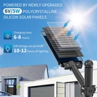 [ULTRA BRIGHT AND WIDE ILLUMINATION RANGE] The OKPRO solar street light features a 220° wide angle, covering a larger area with its 270 super-bright 5730 LED beads, illuminating up to 600 square feet for optimal lighting effect. This solar flood light ensures maximum brightness and coverage. [HIGH-QUALITY SOLAR PANEL FOR ZERO ELECTRICITY COST ALL YEAR ROUND] The street lights solar powered features a newly upgraded 6V/5W polycrystalline silicon solar panel, significantly improving the photoelectric conversion rate. No wiring is needed as the solar panel charges with solar energy, ensuring environmentally friendly operation with zero electricity cost all year round. It takes about 6-8 hours to fully charge, providing 10-12 hours of usage on a full charge. [EQUIPPED WITH MOTION SENSOR AND TIMER SETTINGS] Mode 1: 100% brightness when motion is detected, 30% brightness when no motion is detected.Mode 2: 100% brightness when motion is detected, off when no motion is detected.Timer Settings:1-hour sensor / 2-hour sensor / 3-hour sensor / 5-hour sensor: After the set time, the light switches to sensor mode 1. 4-hour mode: The light turns off automatically after the set time. Multiple intelligent control modes enhance the versatility of these solar motion lights outdoor. [EASY INSTALLATION AND IP66 WATERPROOF] Our solar parking lot lights comes with all necessary installation accessories and requires no wiring. Simply fix the base where you want to install it. The solar street lights outdoor waterproof are suitable for patios, parking lots, garages, gardens, pathways, streets, and yards, meeting diverse lighting needs effortlessly. With an IP66 waterproof rating and made from high-quality ABS and die-cast aluminum bracket, it is sturdy and durable, capable of withstanding rain, high temperatures, low temperatures, and other extreme weather conditions. [EXECELLENT AFTER-SALES SERVICE] OKPRO solar street lights offer a two-year after-sales service. If you need any further assistance, please contact us through the Amazon platform, and we will provide a satisfactory solution within 24 hours. Product Description