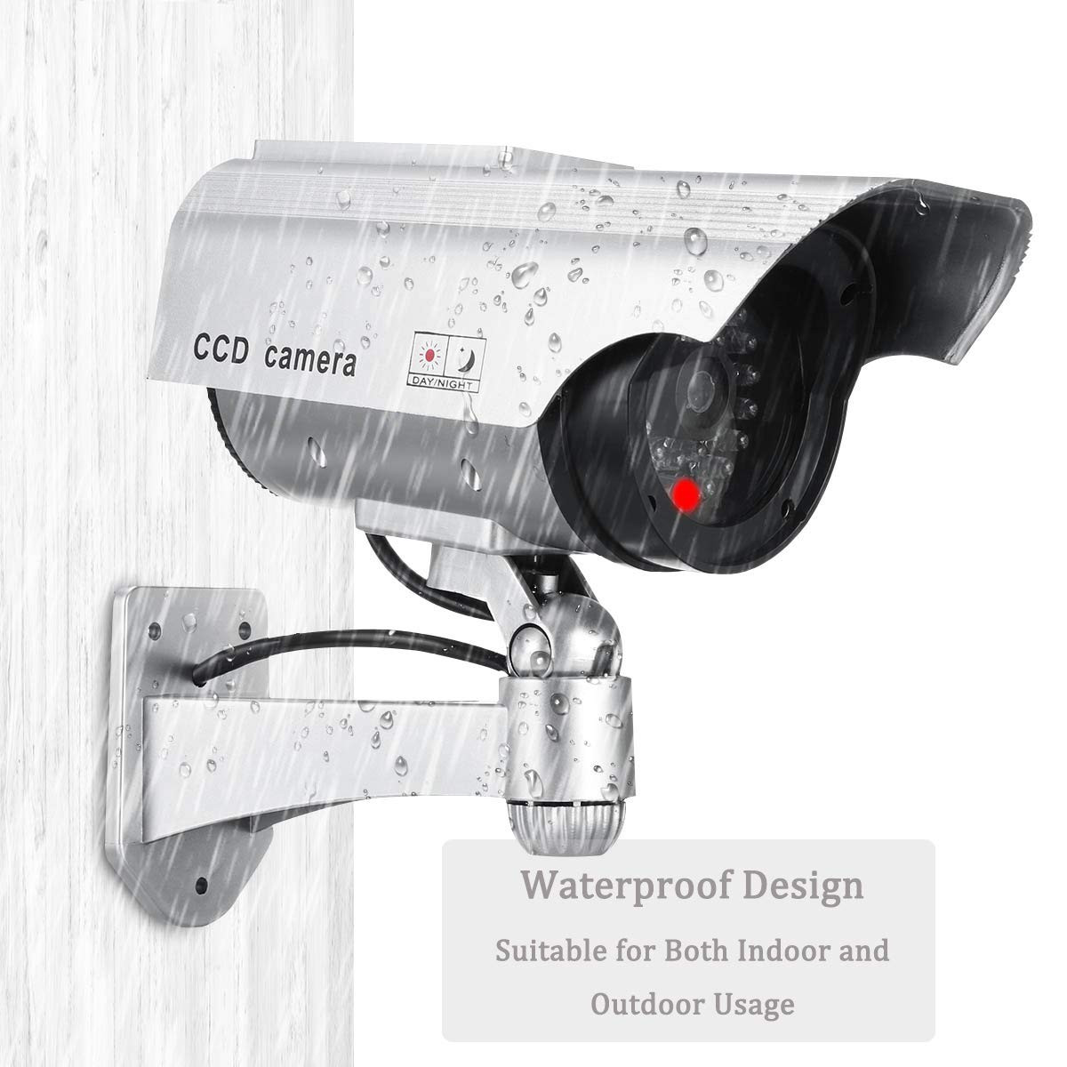 ☛ Usage: This professional-looking Dummy/Fake Solar Powered Security Camera is made to look like the real thing, which will deter robbery, theft, and vandalism without the high cost of a real security camera. ☛ Solar powered: The solar system will work automatically in a well-lit environment during the day. However if you use the camera indoors, or you want the light to flash at night, you need install 2 pcs AA batteries which are not included in the package. Attention please: We suggest use rechargable batteries instead of common batteries If OUTDOOR USE, it maybe cause the circuit damage if use common batteries because it can’t store electricity ☛ Flashing Led: Blinking red LED powered by solar or 2pcs AA batteries saves more power and makes sure it is able to work normally on a cloudy or raining day. Have everyone believes your house is monitored 24/7 continuously. ☛ Indoor or Outdoor Use: This camera is designed to be used indoors or outdoors. Can be located in different stuation,such as houses, school, office, garden.... ☛ No installation restrictions: install it anywhere without cabling needed and no need to find any electrical socket. 【100% Customer Satisfaction: 30 days money-back and 60 days replacement. Any problems, please just feel free to contact us, you can always rely on our 20/7 customer service.(Customer Support response within 20 hours everyday)】