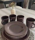 Sonoma Plum By TAG Ltd 8 Pc Set Incl~ 4 Dessert/Salad Plates and 4 Mugs made of Ironstone and are Vintage from 1999-2002. Beautiful Plum color with edges tipped in brown rustic but modern clean lines. This is a discontinued color and very hard to find. All 8 pieces are in excellent condition. No chips or damage. For additional fee, I also have a Mirabello Aubergine Plum tablecloth for sale that enhances the beauty of this dinnerware! See in photos or separate listing. From a smoke and pet free home. Thank you Rita
