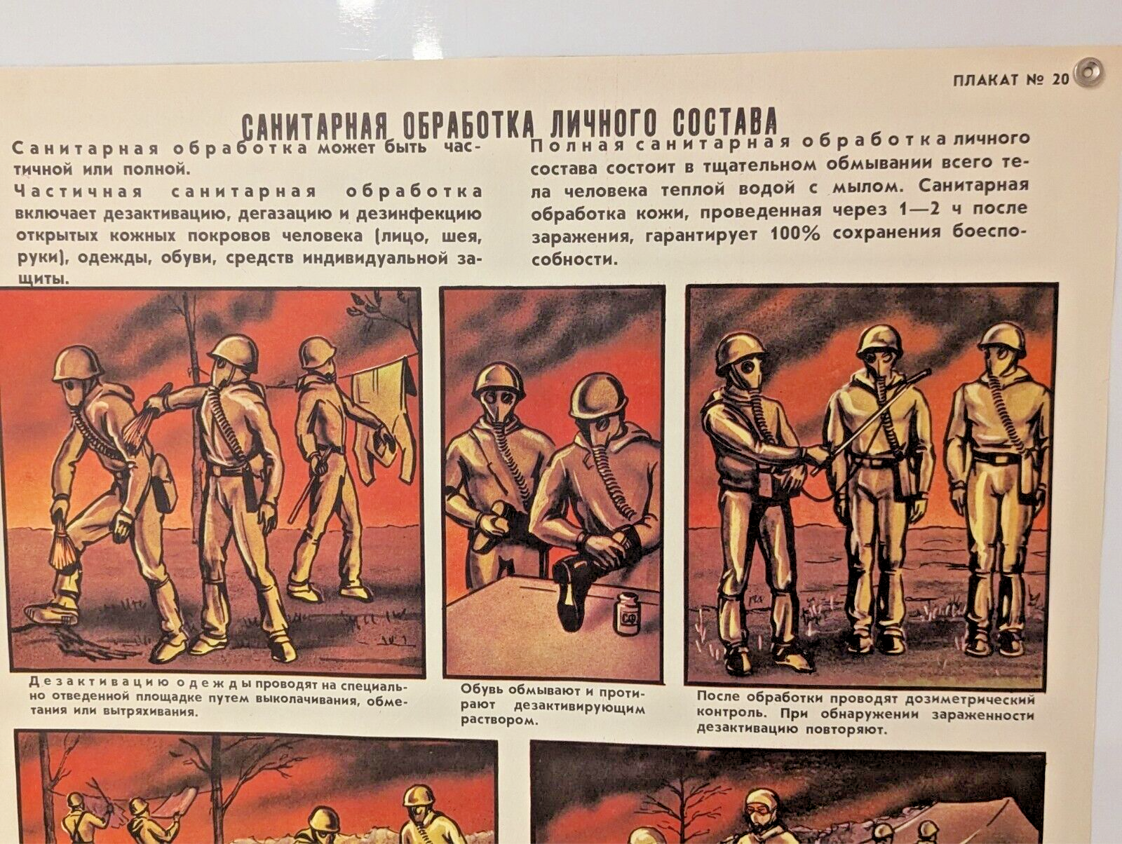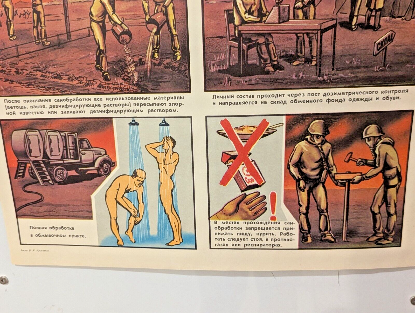 Soviet Radiation Propaganda Poster Poster Original The inscription on the poster: "Sanitary treatment of personnel after a nuclear explosion" Dimensions: Length: 25 inches OR 60 CENTIMETERS Height: 16 inches OR 43 CENTIMETERS Cosmetic condition: see photos Send the next day after payment. Send the track code. I combine items, so you can save on shipping by ordering two or more lots. Items are well packed. Payment via PayPal. I'm glad that you are interested in lots that I sell. Wish you a good shopping.