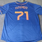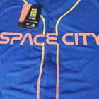 This Space City Houston Astros Hader 71 Jersey in XL features vibrant colors and quality construction, ideal for showcasing team spirit. • Button-down closure • Short sleeves • "Go for Launch" collar text • 100% polyester • Made in China • Official Astros logos • LevelTX branding