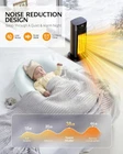 2 IN 1 HEATER FAN & TEMPERATURE: This ceramic heater provides three heat settings – 1500W, 1000W, and 500W – accompanied by a cooling fan function, you can use it both for summer or winter. It also allows you to set the temperature within a wider range of 41-95℉ in 1℉ increments, saving energy while maintaining your comfort. MULTI-PROTECTION SAFETY FUNCTION: The heater made of V0 flame-retardant materials with multiple safety features, including overheat protection, smart tip-over protection, and a safety plug that ensures the safety of you and your loved ones. These features will automatically turn off the heater in the event that it overheats or is tipped over by your children or pets. QUICK & WIDE INDOOR HEATING: The powerful 1500W PTC ceramic heater quickly heats up in seconds and reaches up to 200 sq. ft., providing warmth to your living spaces. With a 70°wide-angle oscillation function, letting you feel the warmth all around. COZY & QUIET HEATING: The heater operates at noise levels below 38 decibels, ensuring a serene ambiance suitable for use in the bedroom while sleeping. With a 1-12H timer function and ECO mode, you can enjoy a quiet and warm night. EASY TO CARRY & CONTROL: The compact heater weight within 4 pounds, design with the ergonomic built-in handle, will allow you to easily move your portable heater to any place, such as office, bedroom or living room. It supports both touch screen & remote control, you can easily set the desired mode & temperatures at any time. NOTE: For your safety, please pay attention to the following matters: 1. Keep the heater away from the place with water to prevent accidents such as machine damage and leakage. 2. Do not cover the machine with coverings such as blankets when using heaters. 3. Do not insert the heater when the wire is damaged.