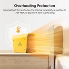 SAFE & RELIABLE: This small space heater made from fire-retardant materials; The ceramic heater has a self-regulating element and automatic overheating protection for added safety. Tip-Over Protection will shut off the room heater if it gets knocked over accidentally to avoid accident happens. It will automatically shut it off if the temperature exceeds the limit value and back to work once it gets to a safe temperature inside. ADJUSTABLE THERMOSTAT CONTROL: Features a temperature range of 41 °F-95 °F; Rotate the thermostat control dial to lower the temperature once the room is warm, this ceramic heater will greatly reduce power consumption. INSTANT WARM-UP: The small space heater heats up a room within seconds thanks to its 1,500 W output, reliable ceramic heating elements and large air outlet; Distributes warm air evenly around a large area of up to 108 sq. ft.; The space heater suitable for living rooms, dressing rooms, bedrooms, studies, offices and more. COMPACT, PORTABLE & CONVENIENT: The space heater only measures 6.7 in x 6.4 in x 6.2 in and weighs in at just 42.3 oz; The light weight and ergonomic handle allow for easy transportation. IMPORTANT SAFETY NOTICES: Please note these for safety: 1. To avoid burns, do not let bare skin touch hot surfaces. 2. Do not use the heater outdoors. 3. In order to avoid overheating, do not cover the heater. 4. Do not use the heater in the immediate surroundings of a bath, a shower or a swimming pool. If you want to use the heater in the bathroom, please use it when the bathroom is dry and avoid the heater/plug splashed water!