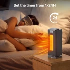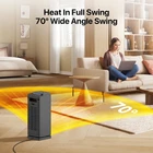 About this item Rapid and Potent Warmth ---- Prepare for the cold months with your perfect ally — Obtain this swift-warming room heater for maintaining cozy temperatures. An indoor space heater, enhanced with a 1500W PTC heating innovation, swiftly warms your entire area within moments. The quiet ceramic tower heater operates at a sound level below <35db, ensuring peaceful sleep. Embrace the winter with assurance, secure in the knowledge that our top-notch heater will cater to your needs. Energy Saving ECO Mode ---- Discover the ideal harmony between comfort and energy efficiency with our ECO mode, which enhances heating efficiency while minimizing electricity consumption. By automatically adapting its output to ambient temperature, our electric space heater for indoor use maintains a consistent indoor temperature, ultimately leading to reduced utility bills. This portable heater ensures your surroundings meet the desired comfort levels, making your living experience truly cozy. 3D Oscillation With Remote Control ---- Crafted exclusively for your supreme comfort and tranquility, this indoor space heater for large room is designed to excel. With its remarkable capacity for indoor large room heating, this unit boasts both adjustable up/down wind direction and a wide 70° oscillation range, ensuring warmth permeates every corner. The accompanying remote control empowers you to fine-tune settings without leaving your seat, effortlessly customizing the heat to your liking. 24H Timer & All-Day Operation ---- Indulge in the ease of our electric space heater's timer function and non-stop 24H operation capability. With the 24H timer, you can personalize when the hushed portable heater initiates and halts, ensuring a snug room upon awakening or a welcoming haven upon returning home after a lengthy day. Simultaneously, 24H all day operation assures unwavering warmth. Embrace effective heating that synchronizes and relish a snug ambiance around clock, be it day or night. Function description 1. power 900-1100W /1150-1350W /1400-1500W, three-speed adjustment 2. Mode: heating mode; energy saving mode; fan mode 3. Screen off function 4. child lock switch 5. Shaking head function 6. Silencing function 7. delay timer function 8. Tipping protection function 9. touch screen function 10. overheating protection function 11. Two control modes: panel touch screen control/remote control. Scope of use 1. Indoor use, the use of ambient temperature range -10 ℃ ~ 45 ℃. 2. Vertical moving type/vertical rotating type Features 1. PTC heater, fast heating, constant temperature safety, high efficiency and power saving; 2. High-end display: LED digital display; 3. lightweight products, can be put on the ground to use, can also be put on the countertop to use, and stand 70 ° rotation angle; 4. Configuration of dumping switch and overheating protection, safe and reliable; 5. control panel touch screen operation, easy to operate. Comes with noise reduction function, operation is quiet and comfortable. Noble and generous appearance. Package Included: 1 x Electric Heater 1 x Remote control 1 x Instructions