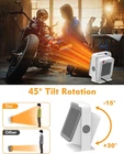 🔥🔥 Instant Warmth with PTC Ceramic: Experience cozy comfort within 3 seconds, thanks to our advanced PTC ceramic heating technology. Say goodbye to chilly office spaces and hello to rapid warmth. 🔥🔥 Customize Your Comfort: Find your ideal heat angle with the 45° adjustable design. Whether it's for targeted warmth during work or a subtle heat adjustment, this heater has you covered. 🔥🔥 Double the Safety, Double the Peace of Mind: Your safety is our priority. This space heater features both overheating and tip-over protection, ensuring you stay warm without worries. It's safety meets warmth in one sleek package. 🔥🔥 Modern Minimalist Elegance: Elevate your workspace with this modern, minimalist space heater. It's perfect for your indoor office desk or any small area. The sleek design seamlessly blends with your decor. 🔥🔥 Perfect Winter Gift: Looking for a thoughtful gift for the winter season? This small desk space heater is an ideal choice for Halloween, Thanksgiving, Christmas, or your parents' birthday. It's a practical gift that keeps your loved ones warm all winter long. Product Description The video showcases the product in use. The video guides you through product setup. The video compares multiple products. The video shows the product being unpacked. Small Size but Pumps Out a Lot of Heat A 1.65-meter cord with 1,000 watts max power, 400w low heat, 600w high heat. "A good sturdy build lasts forever, which can take it around the house with me to either heat a small room or maybe down in the garage where there is no heat let's turn it on so the fans blow quite hard but you can hear the engines very quiet let's turn it on to high you can definitely feel more heat coming out but it's still very quiet and that is putting out a good amount of heat for a little heater." The video showcases the product in use. The video guides you through product setup. The video compares multiple products. The video shows the product being unpacked. Features 45-degree Angle Rotate 45° variable angle for different use “you can rotate it up or down, which will allow heating in all different directions, this heater is great for on or under a desk” The video showcases the product in use. The video guides you through product setup. The video compares multiple products. The video shows the product being unpacked. With Its Portable Handles The back filter is designed to keep the heater clean & extend its service life. "this heater can accompany you anywhere you go providing warmth when and where you need it whether it is on your office desk or in a small room it's your perfect solution to stay warm and cozy the small space heater is your ideal winter companion and a thoughtful gift for your loved ones stay warm with us and get yours today." XIUREI Space Heater Add to Cart Add to Cart Add to Cart Add to Cart Customer Reviews 4.4 out of 5 stars 404 4.4 out of 5 stars 404 4.4 out of 5 stars 404 4.4 out of 5 stars 404 4.0 out of 5 stars 30 Price $24.99 $ 24 . 99 $24.99 $ 24 . 99 $24.99 $ 24 . 99 $24.99 $ 24 . 99 — POWER 400-600 Watts 400-600 Watts 400-600 Watts 400-600 Watts 1000-1500 Watts VOLTAGE 120V,60HZ 120V,60HZ 120V,60HZ 120V,60HZ 120V,60HZ MODE OPTIONS H1/H2 H1/H2 H1/H2 H1/H2 Low/High/Eco/Fan ADJUSTABLE ANGLE 45° up/down angle 45° up/down angle 45° up/down angle 45° up/down angle 70° oscillation OVERHEAT PROTECTION 185 ℉ 185 ℉ 185 ℉ 185 ℉ 185 ℉ TIP-OVER PROTECTION Tilt 45° Tilt 45° Tilt 45° Tilt 45° Tilt 45° BUILT-IN HANDLE Yes Yes Yes Yes Yes