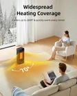 2S Fast Indoor Heating: Powerful 1500W PTC ceramic heating allows this electric space heater to heat up in 2 seconds. Built-in high-quality heater turns 3000 rpm, which increase 200% more air heating than traditional heaters. Our portable heater(Dimensions:6 x 4.6 x 15.4 inches) is meant to sit by your feet on the floor, near your hands on a desk, or carry around indoors Multiple Safety Protections: Our space heater made of V0 flame-retardant materials with multiple safety features including built-in smart tip-over protection, overheat protection, child lock, 12-hour timer, 24-hour automatic power off without manual operation, and sturdy 6ft long flat power cord. Protection for safer use around kids, pets, suitable for indoor spaces such as bedrooms, living rooms, and offices Energy Efficient Space Heater: With a built-in precise temperature sensor, the smart ECO mode adjusts the working mode independently based on the ambient temperature which helps saving more on energy bills. Plus, personalize your own comfort with the digital thermostat from 41 to 95℉, adjustable in 1℉ increments. Our indoor heater ensures your surroundings meet the desired comfort level Warm the Whole Home: With its remarkable capacity for 260 sq.ft large room heating, this indoor heater boasts a wide 70°oscillation range, ensuring warmth permeates every corner. The accompanying remote control empowers you to fine-tune settings without leaving your seat, effortlessly customizing the heat to your needs Quieter Design: This space heater indoor features 2 quiet heat settings (high heat and low heat), ECO mode and fan mode. Built-in quiet brushless motor and the fan wheel uses oblique airflow technology, which operates at a sound level below 32db. Calm airflow lets you sleep soundly and work undisturbed during the cold winter. Alternatively, you can press and hold “Timer” for 3 seconds to turn off the display Safety Reminder: Please do not use with an extension cord. Only plug directly into the wall outlet. Power Supply: 120V 60Hz, Cord Lenth: 4.9 ft / 1.5 m Please note that our space heater dimensions is 6"D x 4.6"W x 15.4"H