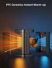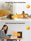 Fast Warmth: The 1500W powerful PTC space heater heats up in seconds and achieves your desired temperature instantly. The ceramic heater is designed to warm up spaces in the home including bedrooms, basements, garages, and living rooms, and can also be used in offices, dorms, hot yoga studios, etc. Embrace warmth in areas up to 200 Sq. Ft. Safety Protection: Safe and worry-free all-day use. Made of V0 flame-retardant materials with multiple safety features including built-in smart tip-over protection, overheat protection, 1-12h timer and safety plug. The indoor heater is the perfect choice for families with children and pets. Energy-Saving: The ECO Mode adjusts the heat level automatically based on the ambient temperature while saving more on energy bills. Personalize your comfort with the digital thermostat from 41 to 95 ℉, adjustable in 1℉ increments. Enjoy precise heat for precise comfort. Warm Any Angle: Experience the enveloping heat of the widest coverage possible. The small electric heater with 80° wide-angle oscillation helps distribute the warm air more evenly toward the room's corners Multifunctional Control: The portable heater has various modes (High/low/ECO) and can meet different heating needs from powerful heat to more energy-saving ECO heat. With noise levels below 35 dB, this room heater operates quietly, making it suitable for use in a bedroom during sleep. Mounting Type: Tabletop. This 10.3-inch compact desk heater with a portable handle can be used anywhere you need. Designed for better user convenience, our electric space heater is easy to operate. Bulti-in an LED display allows you to temperature and mode tracking. The handy remote provides full access from up to 16 feet away.