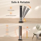 Fast Heaters for Indoor Use: Powerful 1500W PTC ceramic heating allows this space heater indoor to heat up in seconds, suitable for warming up spaces in the home including bedrooms, basements, garages, living rooms, and can also be used in offices, dorms, hot yoga studios, etc. Energy Efficiency: This space heater indoor save on energy bills and live more sustainably. With a built-in precise temperature sensor, the smart ECO mode adjusts the working mode independently (with a low of 900W and high of 1500W to efficiently maintain your desired indoor temperature) based on the ambient temperature. Safety Reminder: Please do not use with an extension cord. Only plug directly into the wall outlet. ✨Highlights: Working Temperature: 1500W Heating Coverage:200 sq.ft. Adjustable Thermostat: 59°F- 95°F (1°increments) Wide Oscillation: 70° LED Digital Display: YES Remote Control: Included Built-in Tip-Over Protection: YES V0 Flame-Retardant Materials: YES ✅ Product Parameter: Color: Black Form Factor: Tower Indoor/Outdoor Usage: Indoor Size: 8.7" X 6.6" X 23.6"H Cord Lenth: 5 ft / 1.4 m Net Weight: 5.2lb 🔥 Uniform Heating: The electric heaters for indoor use enhanced comfort in large rooms with the exclusive trackball system, engineered for smooth and whisper-quiet oscillation. The 70° wide-angle oscillation, boosts heating coverage by 20%, which helps distribute the warm air more evenly towards the room's corners. 🔥 Quiet Heating: 40dB -The fan wheel uses oblique airflow technology, which effectively reduces wind noise and makes the room heater 12% quieter than traditional space heaters for home. Calm airflow lets you sleep soundly and work undisturbed during the cold winter. 🔥 Usage Comfort: The touchscreen is placed on top of the heaters for inside for easier reach, and the remote provides full access from up to 26 feet away. The base diameter of this heater for bedroom is 8.7-inch that this compact design makes our space heater a real space saver that is easy to move around with its hidden handle.