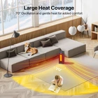 【Safe and Worry-Free Use】Made of V0 flame-retardant materials with multiple safety features including built-in smart tip-over protection, overheat protection, child lock, 24-hour timer, 24-hour automatic power off without interaction, V0 flame retardant 2-prong plug and 6ft long power cord, and it has passed ETL certification. Safe and worry-free for all-day use.Note: Please do not use our heater through a power strip. 【Fast Indoor Heating】This space heater equipped with a thermostat, features three operating modes: Power heat mode, ECO mode, and only fan mode. Powerful 1500W PTC ceramic heating allows this indoor heater to heat up in seconds, suitable for warming up bedrooms, basements, garages, living rooms and offices,etc. 【Quiet Heating】Experience warmth without the noise with our quiet space heater. This indoor heater utilizes advanced quiet technology, operates virtually silently, allowing you to work, relax, or sleep undisturbed while enjoying the cozy warmth it provides. 【Convenient Operation】The space heater come with two control options: remote control with remote control and touchscreen operation with the body panel. It includes a timer option that allows you to set a time for the device to automatically turn off. This indoor heater features a 70° oscillation function and can easily cover an area of 200 square feet. The remote control requires 1 AAA battery. 【Timely Help】We are always glad to help so please feel free to contact us if you have any problems. Product Description