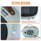 FAST & POWERFUL HEATING - Equipped with advanced ceramic heating elements, small space heater provides faster and more energy efficient heating. This electric space heater heats up to 70°F in 3 seconds, perfect space heater for bedroom, office and desk use. ADVANCED SAFETY - Our portable space heater is made of flame retardant material. Built with multiple safety features, including overheat protection, tip-over protection, 8hr auto power-off, 30 seconds delay shutdown. Safe space heater for indoor use. PORTABLE & QUIET - The size of the electric space heater is: 8.3" x 5.5" x 3.1", 1.6 pounds lightweight. Build with pure leather handle, makes it easy to be placed in any room or moved. Noise is lower than 45dB, will not bother your sleep, read and work, quiet space heater for office. EASY TO USE - Adjust the rotation botton to choose three modes. 800w high heat, 400w low heat and natural wind mode. The high/low heating mode blows warm air at different speeds to heat the air. It makes the small space heater ideal choice for your personal space in home and office. MINI RETRO DESIGN - This mini space heater adopts fashion retro design. The refreshing appearance can decorate your home or office while keeping warm. The mini heater is the ideal Christmas gift for family and friends.