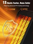 【1-Second Fast Heat with PTC Technology】space heaters for indoor use are equipped with a powerful 1500W output, this electric heater delivers quick warmth to your space. Utilizing advanced PTC ceramic technology ensures a rapid increase in temperature while maintaining safety. The PTC heating elements heat up quickly and reach a stable temperature, providing consistent warmth without overheating, making the space heater large room ideal for chilly mornings or cold evenings. 【2 Heating Levels & Fan Mode】This small heater offers heating modes and fan modes. Whether you need quick heating on a cold day or a refreshing breeze during warmer months, the heaters for indoor use large room provides flexible control. The LOW setting (900W) conserves energy for gentle warming, while the High setting(1500W) delivers robust heat. Fan mode can provide powerful air circulation. Ideal for year-round use, this feature makes the heater perfect for any season or climate condition. 【Panel Control & Remote Control for Easy Control】Not only panel controls for easy adjustments, this portable heaters for indoor use also comes with a remote control for added convenience. Whether you want to change the temperature or switch between heating and fan modes, the remote control puts all these functions at your fingertips, making operation simple and hassle-free. The clear display on the panel shows current settings, ensuring you always know the status of the heater for large room. 【70°Wide Oscillation Covers 200sq.ft】Equipped with a 70-degree oscillation feature, this space heater for office effectively distributes warm air evenly across a generous area of up to 220 square feet. The oscillation allows the heater to sweep from side to side, ensuring that every corner of the room receives consistent warmth. Perfect for open-plan living spaces, offices, or bedrooms, this space heaters for indoor use ensures that warmth is localized and spread evenly around the environment. 【Double Safety Designs】This electric heater has tip-over and overheat protection with automatic shut-off capabilities. The tip-over protection ensures that the heater will automatically turn off if it gets knocked over by children or pets, preventing potential accidents. Additionally, the overheat protection feature monitors the internal temperature and automatically shuts the portable heaters for indoor use down if it detects that the unit has become too hot.