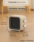 【COMPACT & POWERFUL】: space heater delivers an impressive 1500W of power, despite its compact size of just 6.1”x 4.1”x 5.7”.With advanced PTC ceramic heating technology and a high-speed fan, this small heater heats up in seconds and circulates warm air efficiently. Perfect for instant warmth in small spaces. 【MULTIPLE SAFETY SYSTEMS】: Certified by ETL, this portable heater is equipped with advanced overheat protection and a smart tip-over shut-off system. It automatically shuts off if it overheats or gets knocked over, then restarts once it cools down or is upright again. Enjoy peace of mind with reliable, built-in safety features. 【2 IN 1 HEATER FAN】: Our small ceramic heater offers 2 heating levels (1500W/1000W) and A COOL FAN mode, making it perfect for both winter and summer use, won't just gather dust in summer. It also includes an adjustable thermostat for temperature control. 【QUIET & COZY】: Whether you're working or relaxing at your desk, this electric heater—perfect as a desk heater, space heater for the office, or under-desk heater—provides gentle warmth that ensures a cozy and pleasant atmosphere, all while operating at a low noise level of under 45 dB. 【PORTABLE DESIGN】: Designed for easy carrying, this mini space heater is perfect for indoor use—on or under your desk, in your office, bedroom, bathroom, study room, attic, cabin or RV—delivering warmth and comfort exactly where you need it.