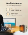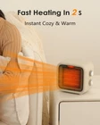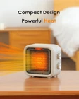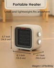 【COMPACT & POWERFUL】: space heater delivers an impressive 1500W of power, despite its compact size of just 6.1”x 4.1”x 5.7”.With advanced PTC ceramic heating technology and a high-speed fan, this small heater heats up in seconds and circulates warm air efficiently. Perfect for instant warmth in small spaces. 【MULTIPLE SAFETY SYSTEMS】: Certified by ETL, this portable heater is equipped with advanced overheat protection and a smart tip-over shut-off system. It automatically shuts off if it overheats or gets knocked over, then restarts once it cools down or is upright again. Enjoy peace of mind with reliable, built-in safety features. 【2 IN 1 HEATER FAN】: Our small ceramic heater offers 2 heating levels (1500W/1000W) and A COOL FAN mode, making it perfect for both winter and summer use, won't just gather dust in summer. It also includes an adjustable thermostat for temperature control. 【QUIET & COZY】: Whether you're working or relaxing at your desk, this electric heater—perfect as a desk heater, space heater for the office, or under-desk heater—provides gentle warmth that ensures a cozy and pleasant atmosphere, all while operating at a low noise level of under 45 dB. 【PORTABLE DESIGN】: Designed for easy carrying, this mini space heater is perfect for indoor use—on or under your desk, in your office, bedroom, bathroom, study room, attic, cabin or RV—delivering warmth and comfort exactly where you need it.
